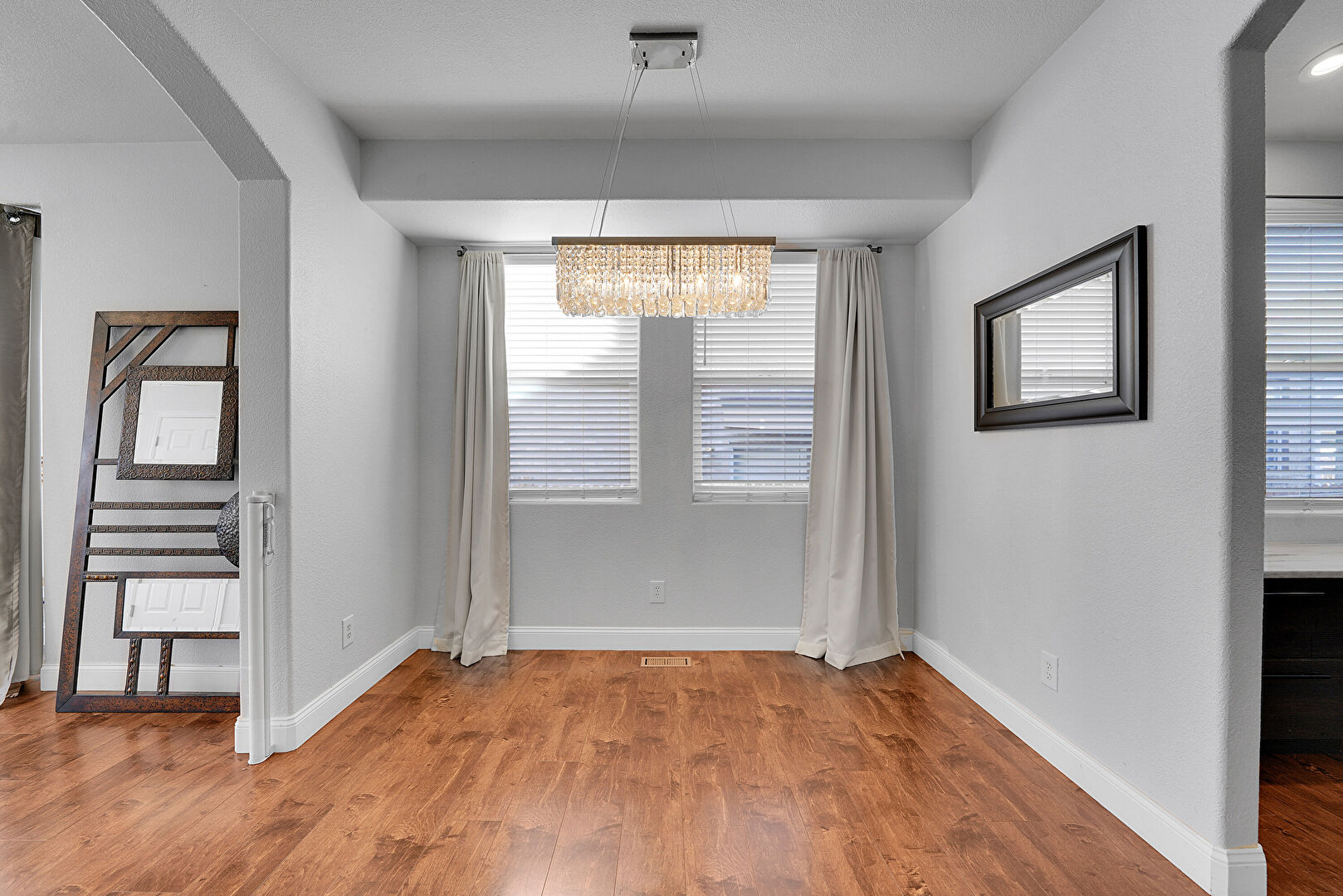 Arched Walkways, Baseboards Wall, Natural Light, Notable Chandelier, Wood Finish Floor, Drywall