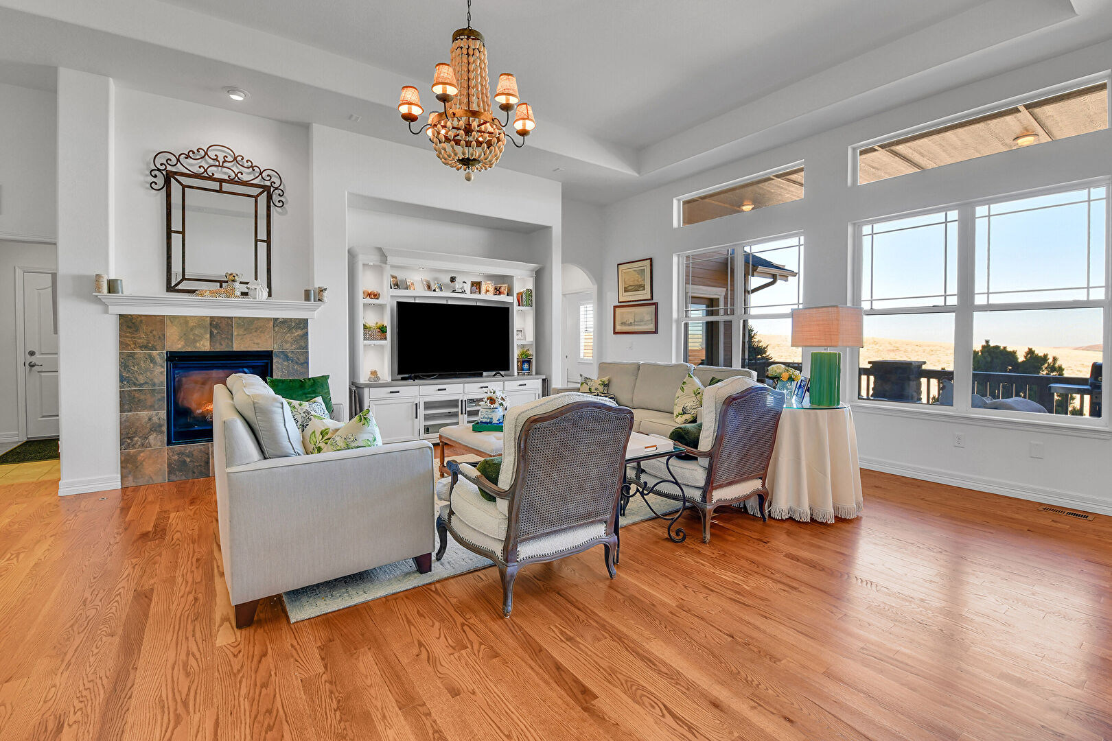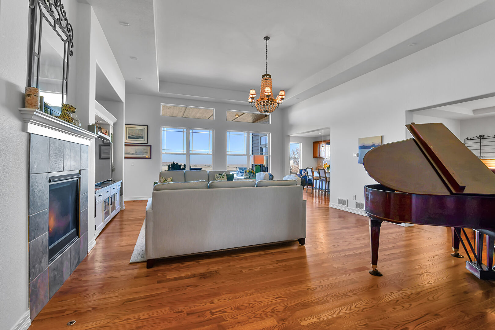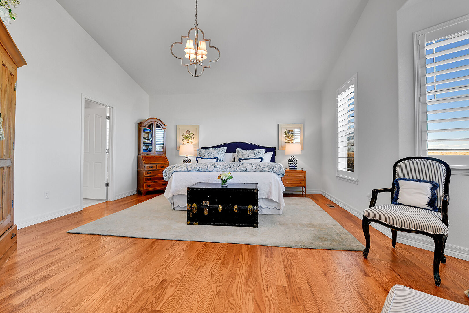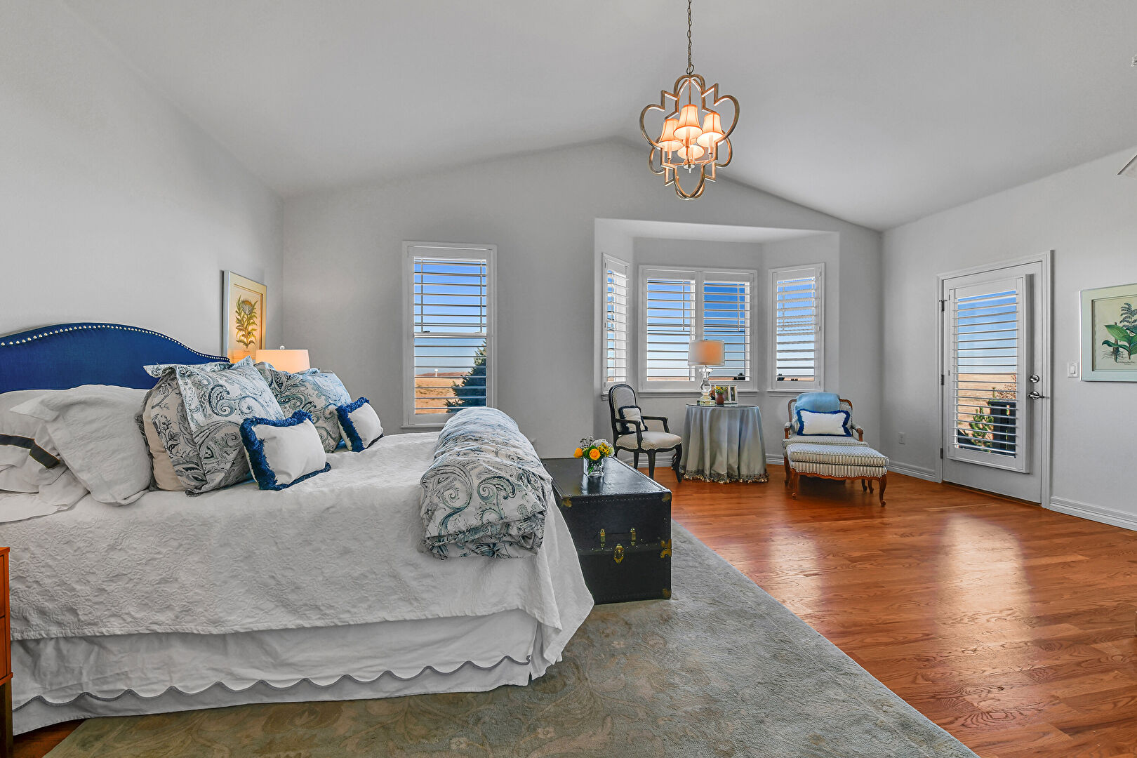 Access To Exterior, Baseboards Wall, Cathedral Ceiling, Drywall, Natural Light, Notable Chandelier, Vaulted Ceiling, Wood Finish Floor, High Ceiling, Vaulted Ceiling, Wood Finish Floor