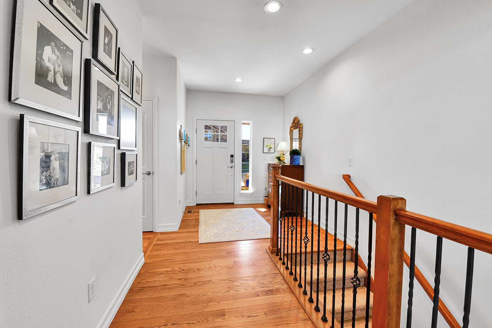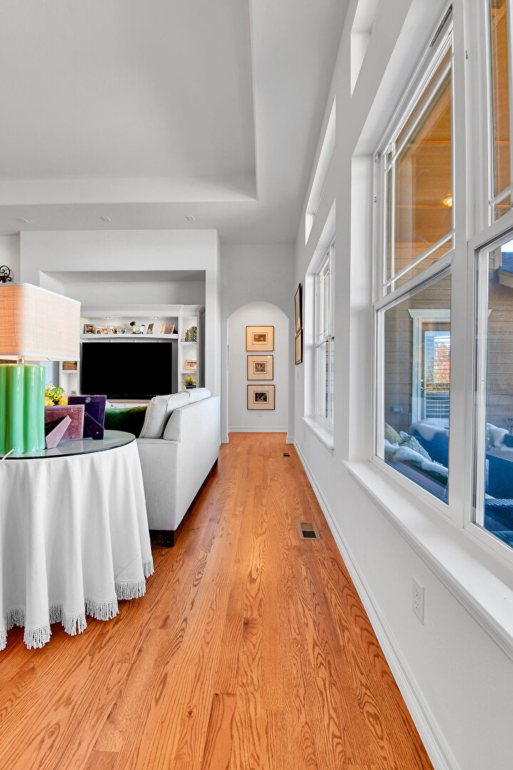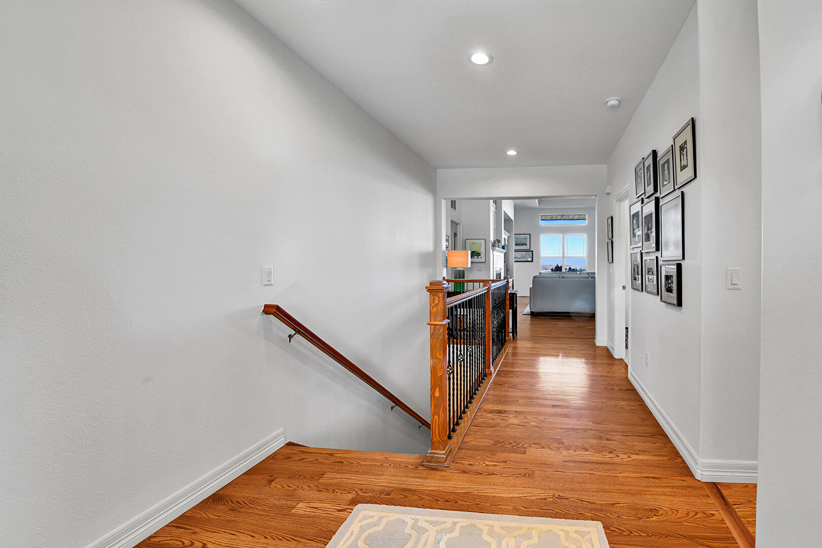 Baseboards Wall, Drywall, Natural Light, Recessed Lighting, Upstairs Landing, Wood Finish Floor, Natural Light, Recessed Lighting