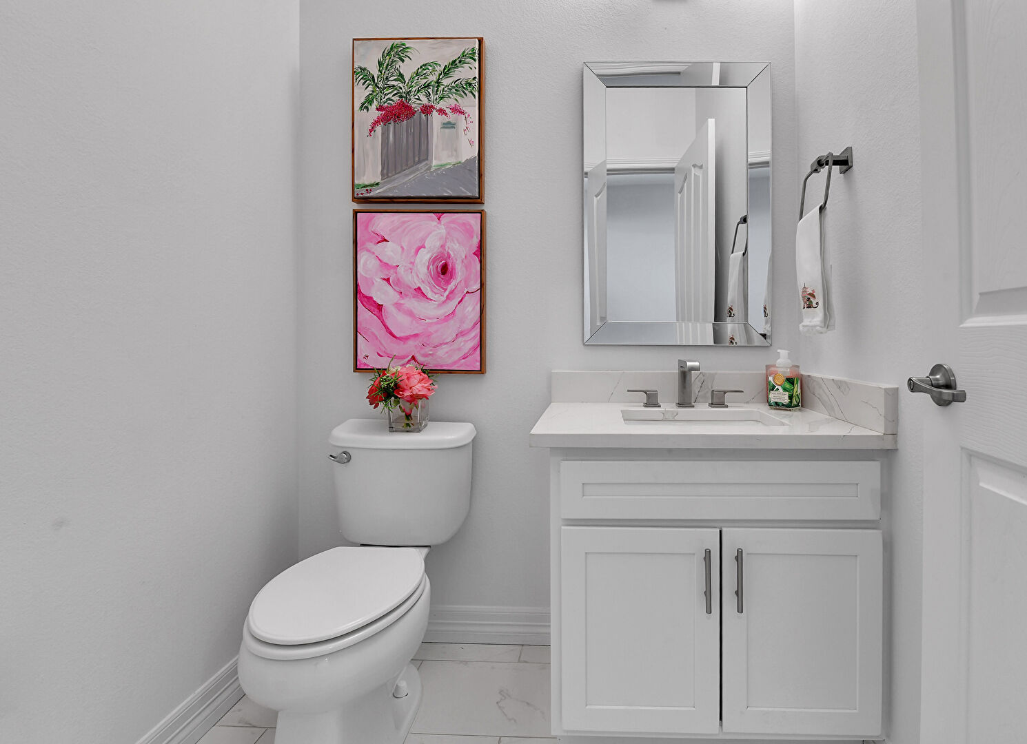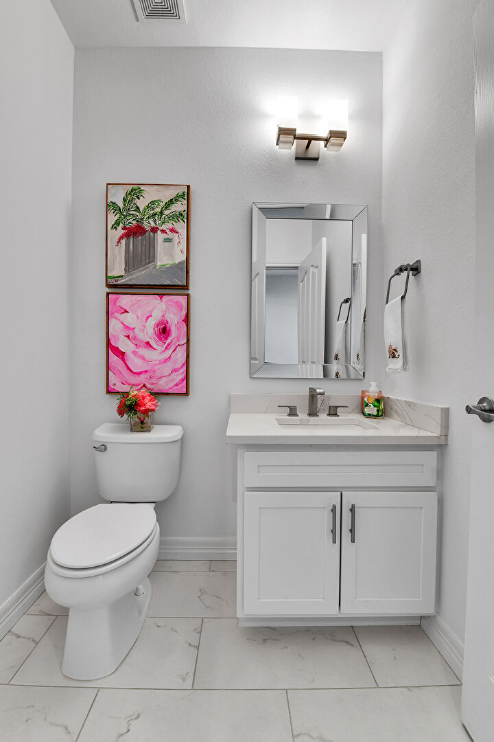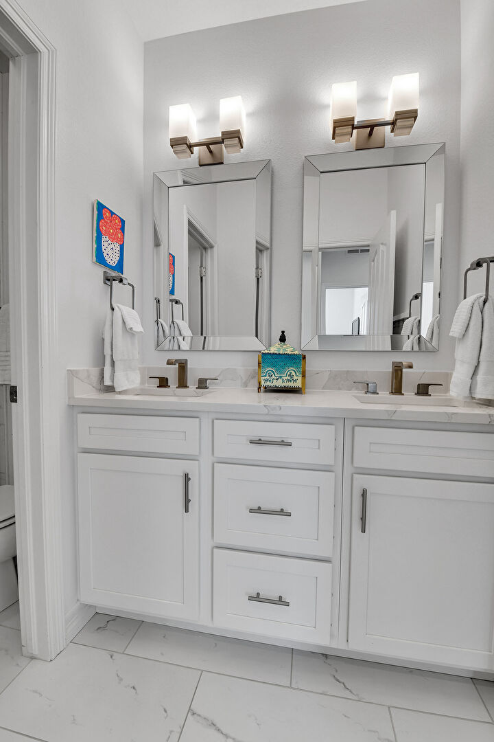 Baseboards Wall, Double Vanity, Drywall, Full Bathroom, Half Bathroom, Marble Finish Floor, Vanity, Water Closet, Full Bathroom, Marble Finish Floor, Vent