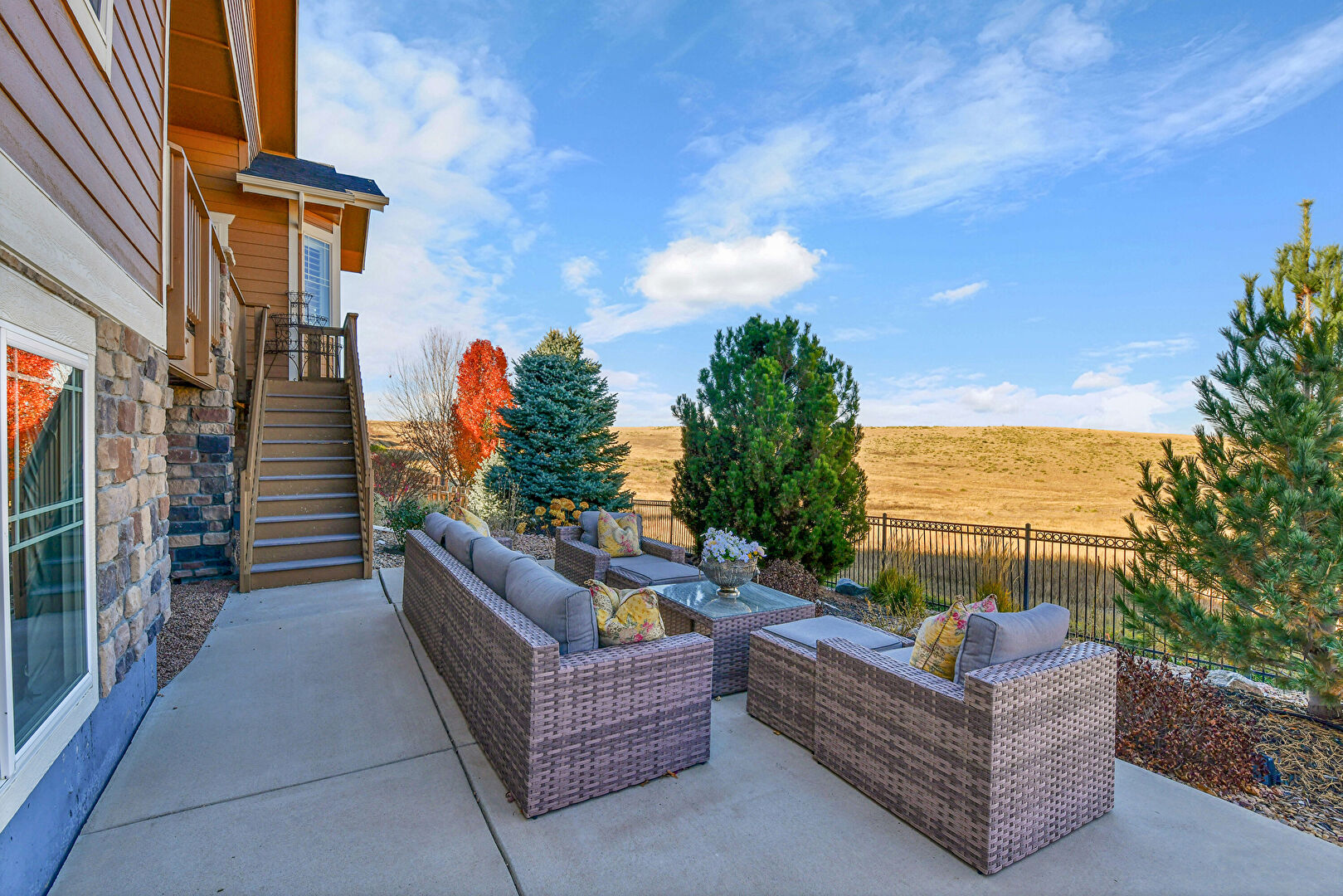 Fence, Outdoor Living Space, Patio, Rural View, Stairs, Stoop, Balcony, Patio
