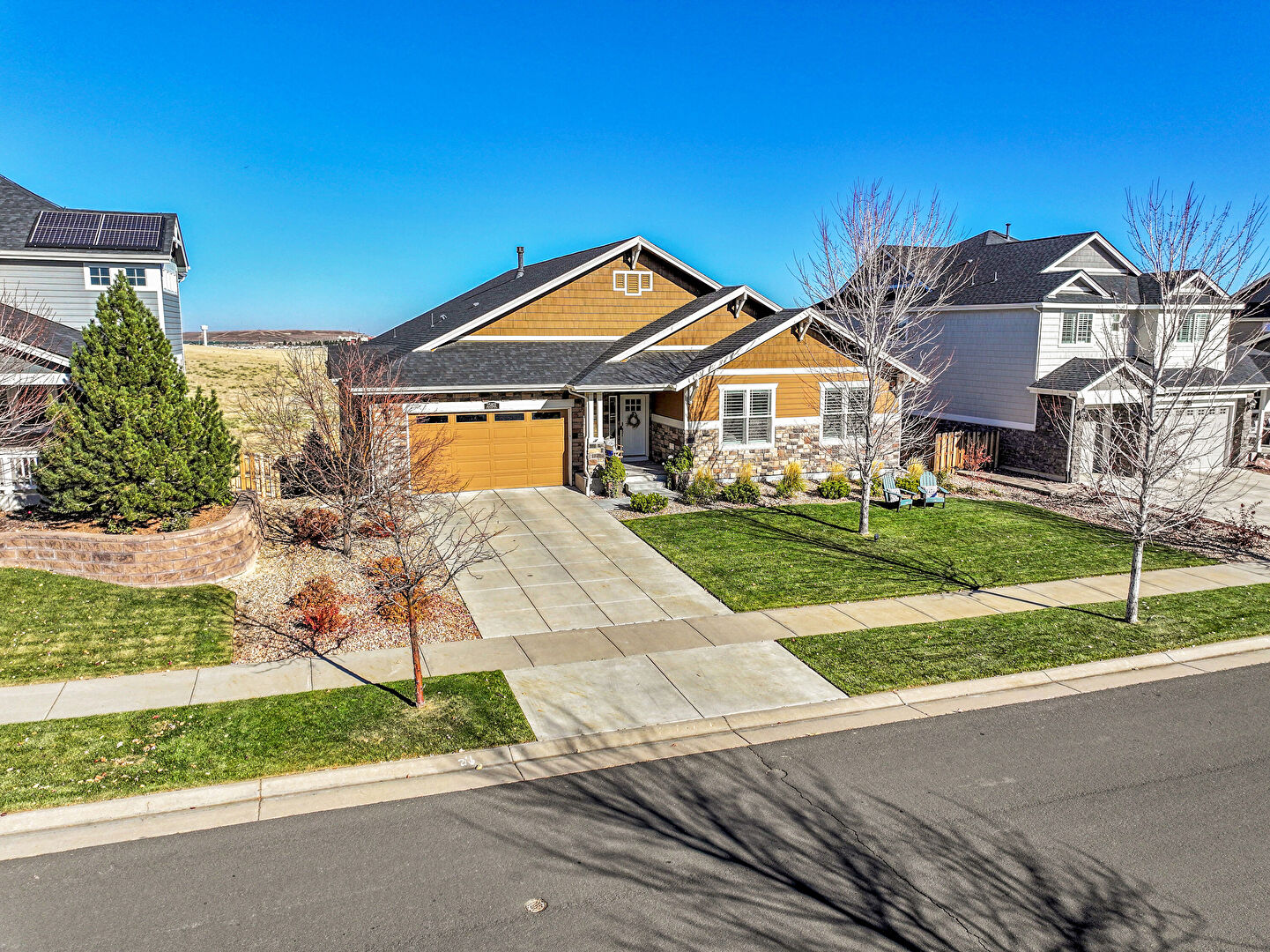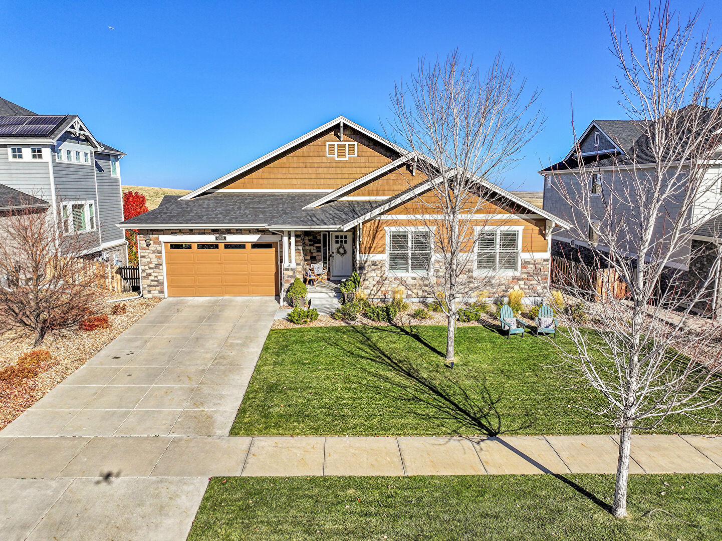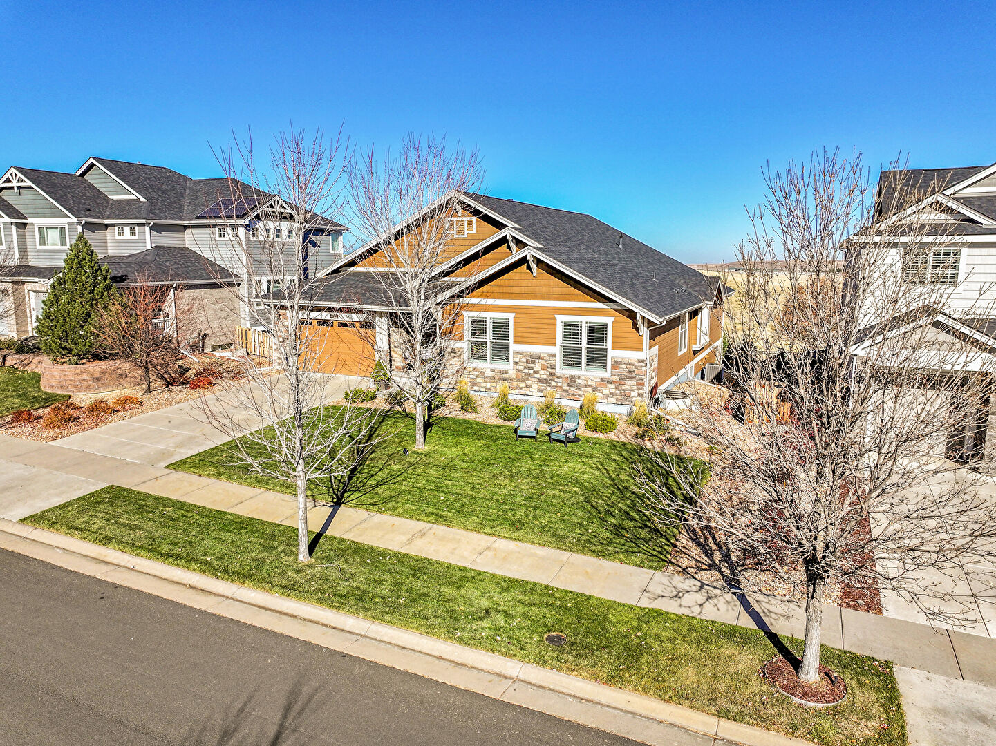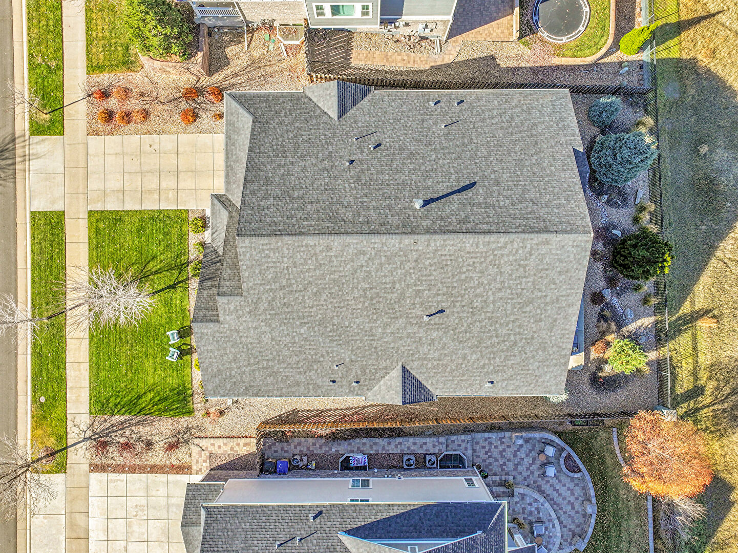 Concrete Foundation, Downspout, Driveway, Fence, Gutters, Horizontal Siding, Lawn, Residential View, Shake Shingle Siding, Stone Siding, Driveway, Gutters, Horizontal Siding