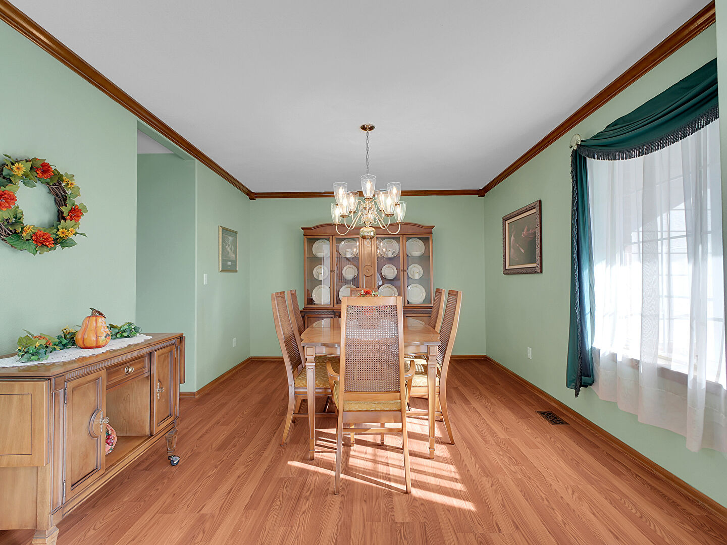 Baseboards Wall, Ceiling Fan, Crown Molding, Drywall, Fireplace, Natural Light, Notable Chandelier, Recessed Lighting, Stairs, Vent, Wood Finish Floor, Drywall, Natural Light, Notable Chandelier, Vaulted Ceiling