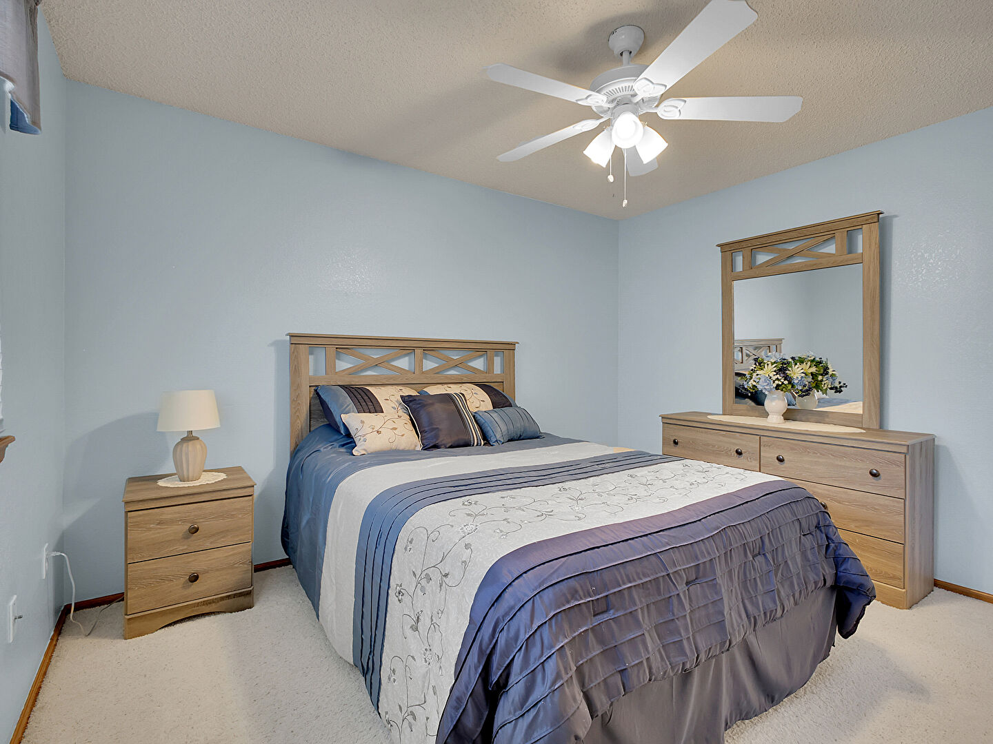 Baseboards Wall, Carpet, Cathedral Ceiling, Ceiling Fan, Closet, Drywall, Ensuite Bathroom, Natural Light, Smoke Carbon Monoxide Detector, Textured Ceiling, Vaulted Ceiling, Vent, Baseboards Wall, Carpet, Ceiling Fan, Drywall, Natural Light, Vent