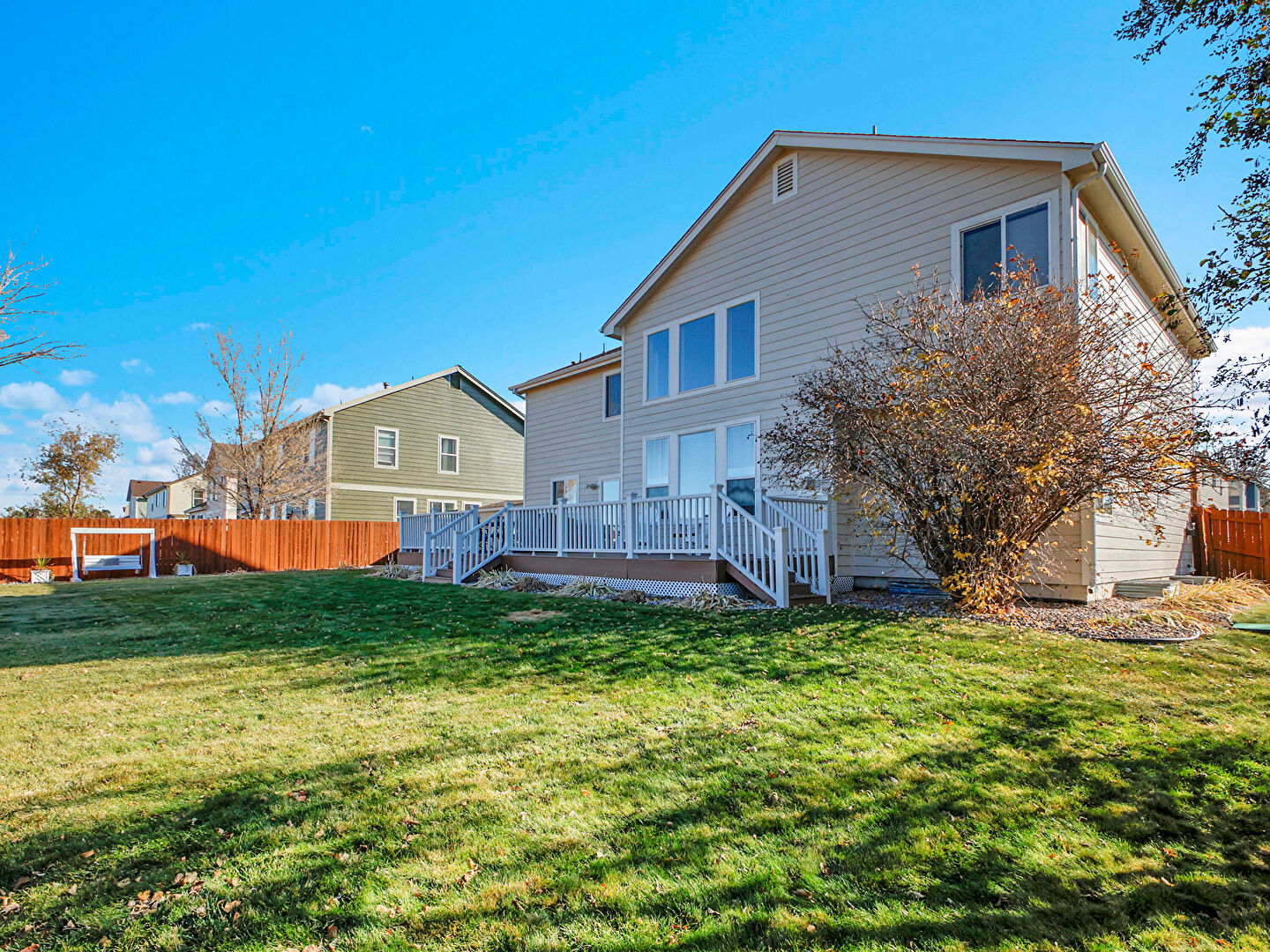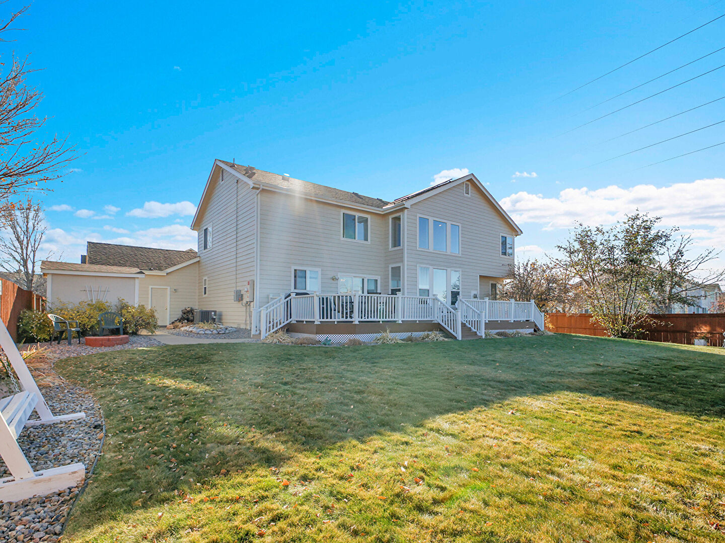 Central Ac, Concrete Foundation, Deck, Downspout, Fence, Gutters, Horizontal Siding, Lawn, Residential View, Downspout, Electric Meter, Fence
