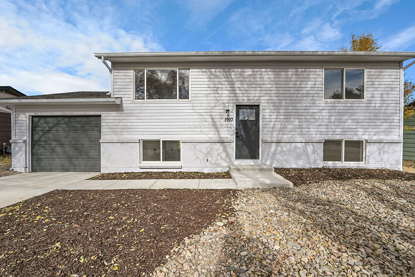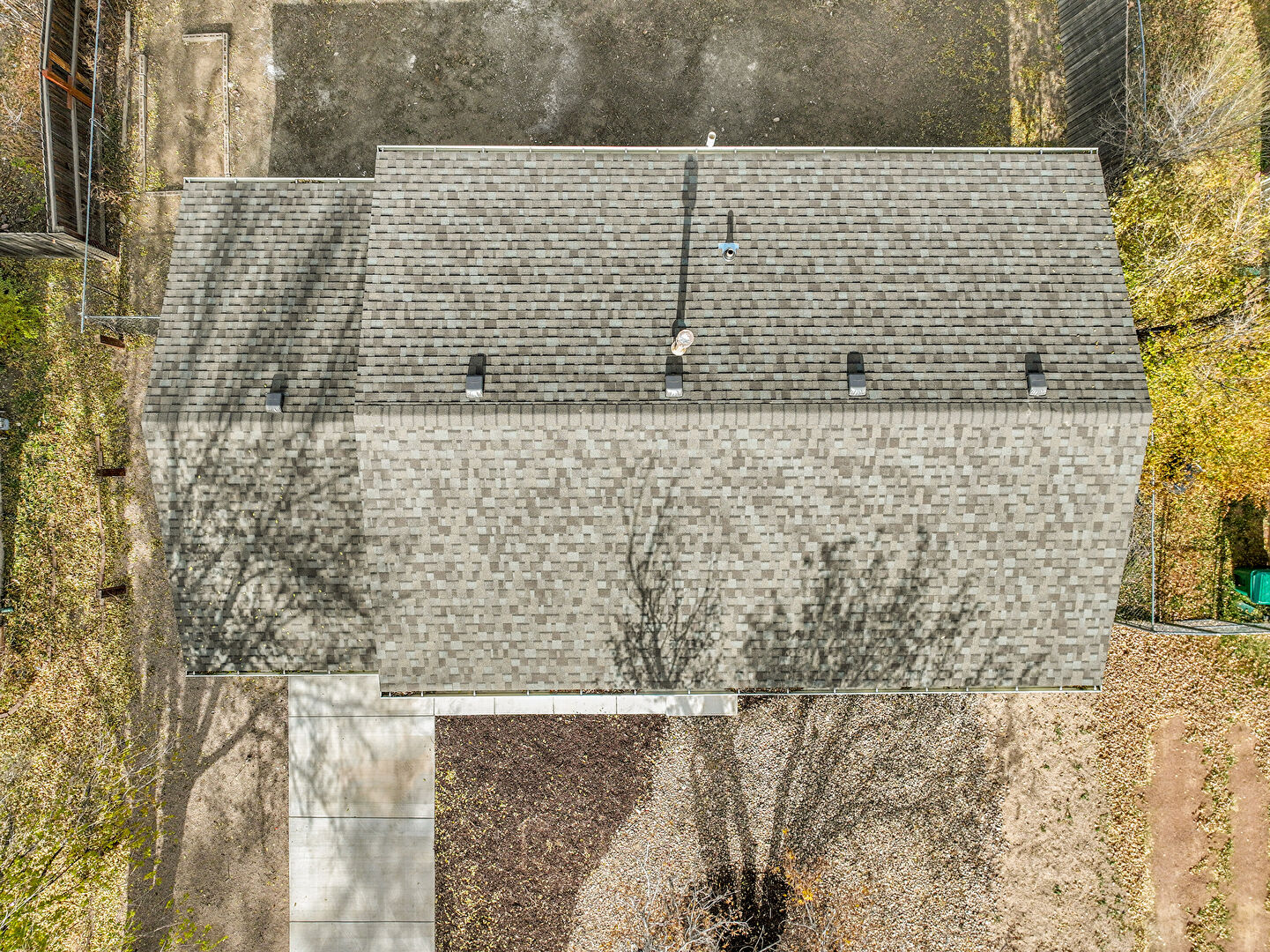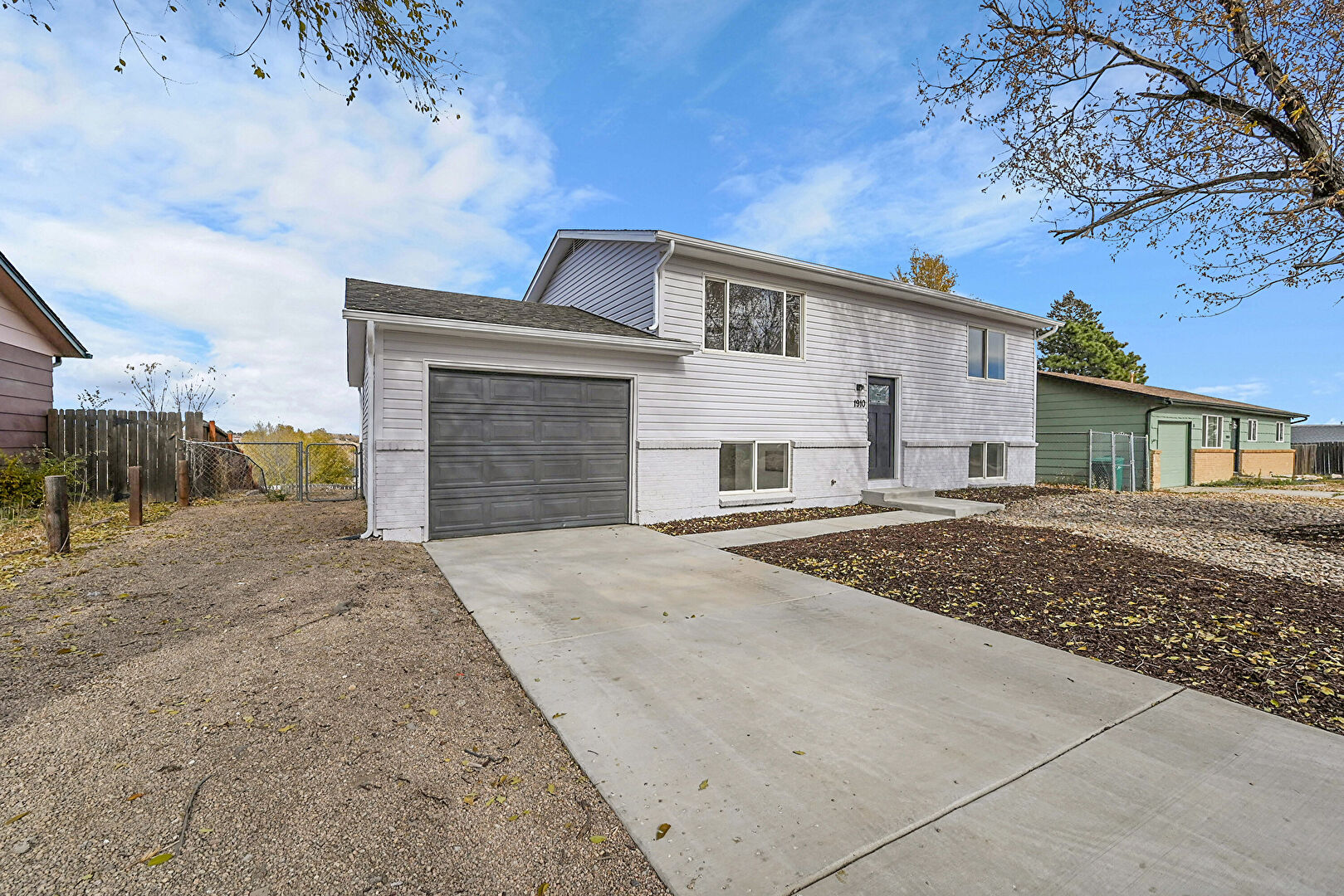 Brick Siding, Concrete Foundation, Downspout, Driveway, Fence, Garage, Gutters, Horizontal Siding, Shingle Roof, Stoop, Downspout, Fence, Gutters