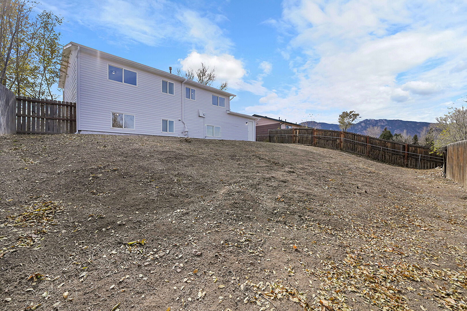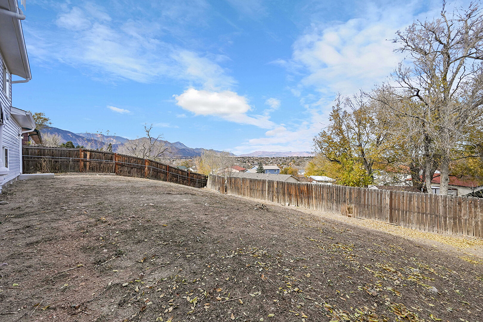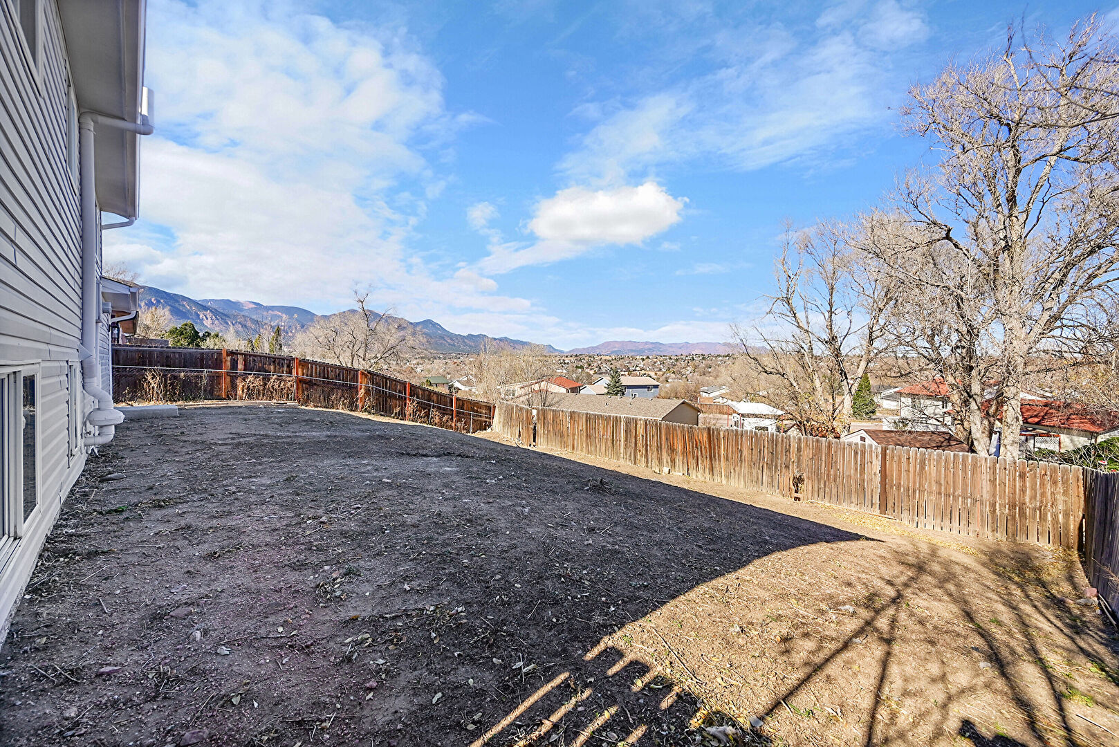 Concrete Foundation, Downspout, Fence, Gutters, Horizontal Siding, Residential View, Downspout, Fence, Mountain View
