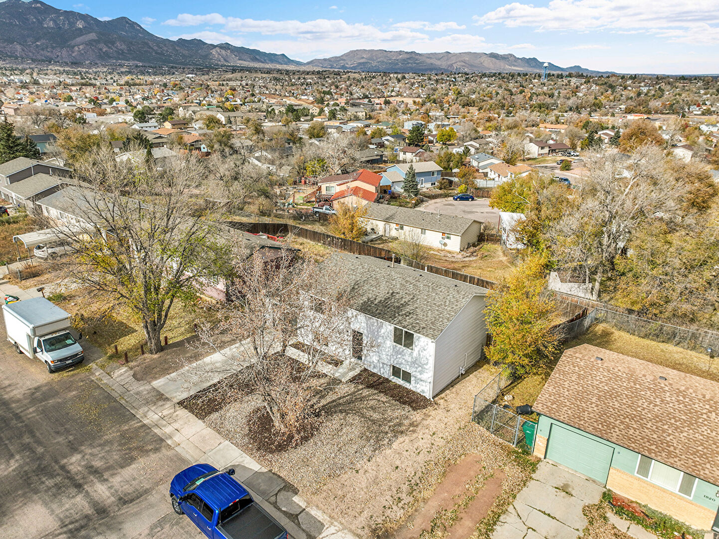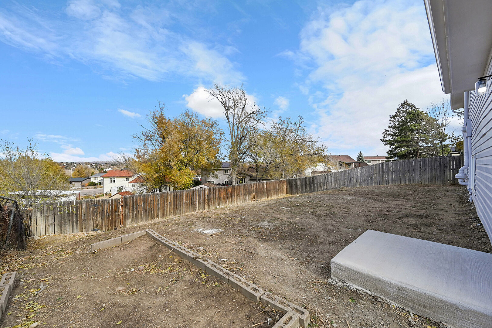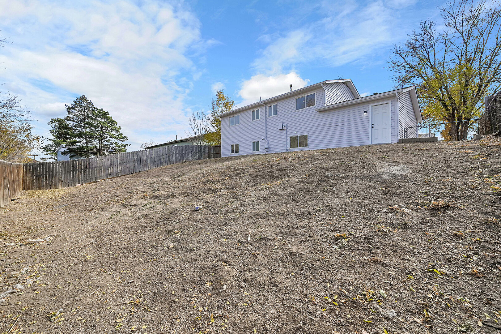 Concrete Foundation, Downspout, Fence, Gutters, Horizontal Siding, Residential View, Downspout, Fence, Mountain View