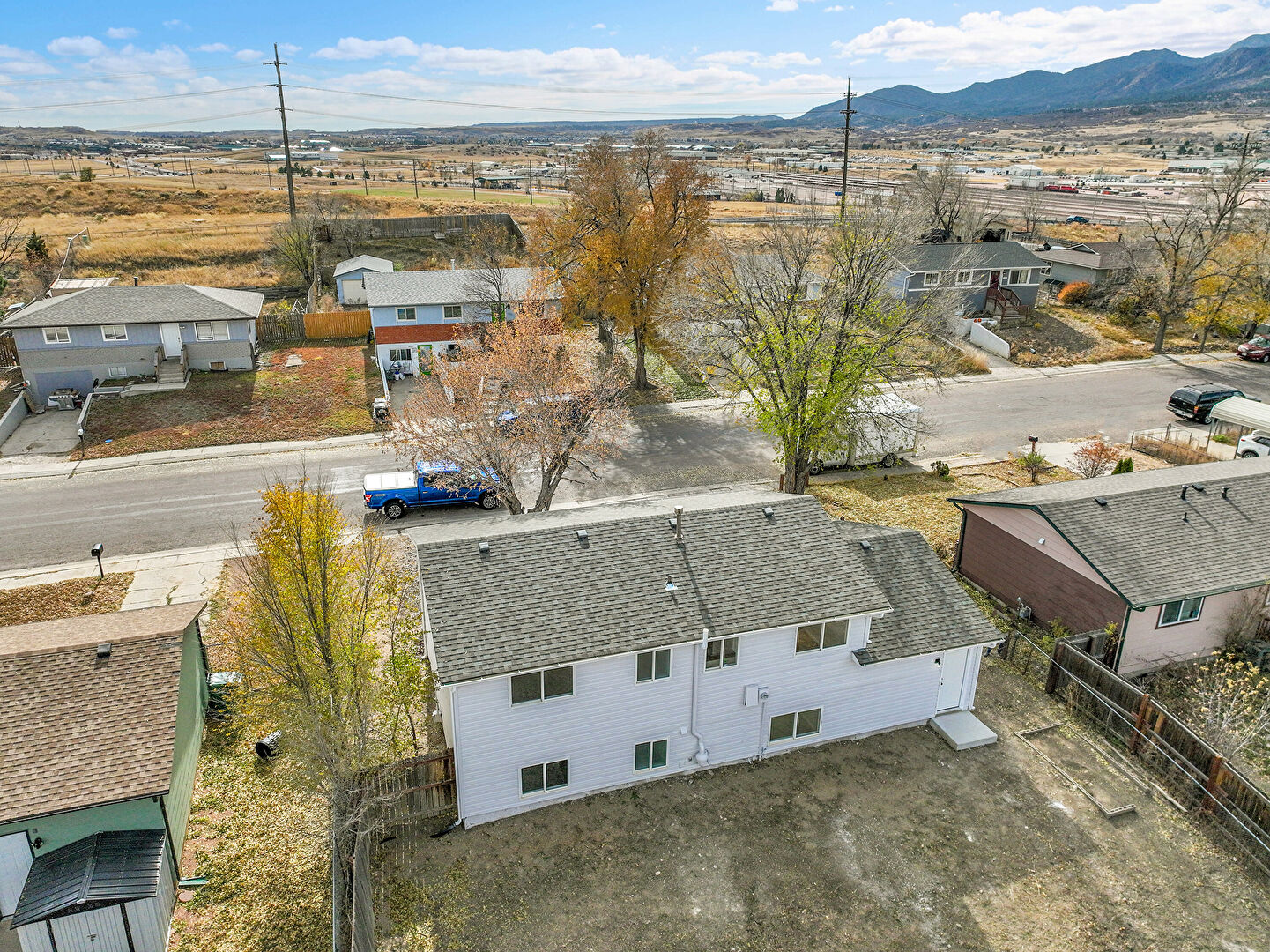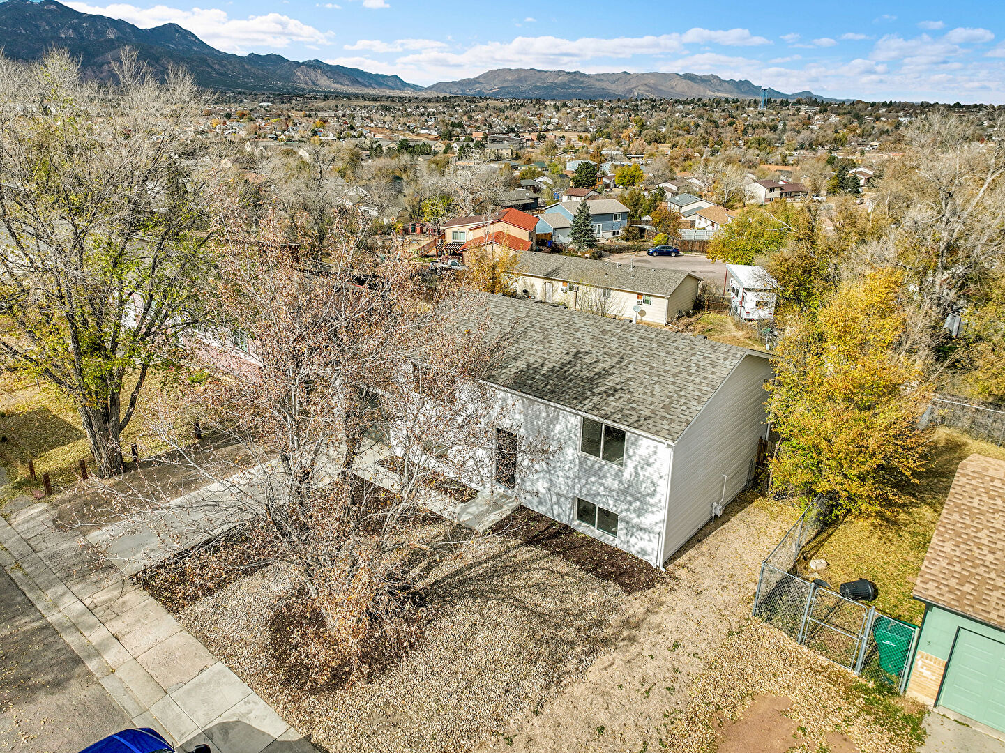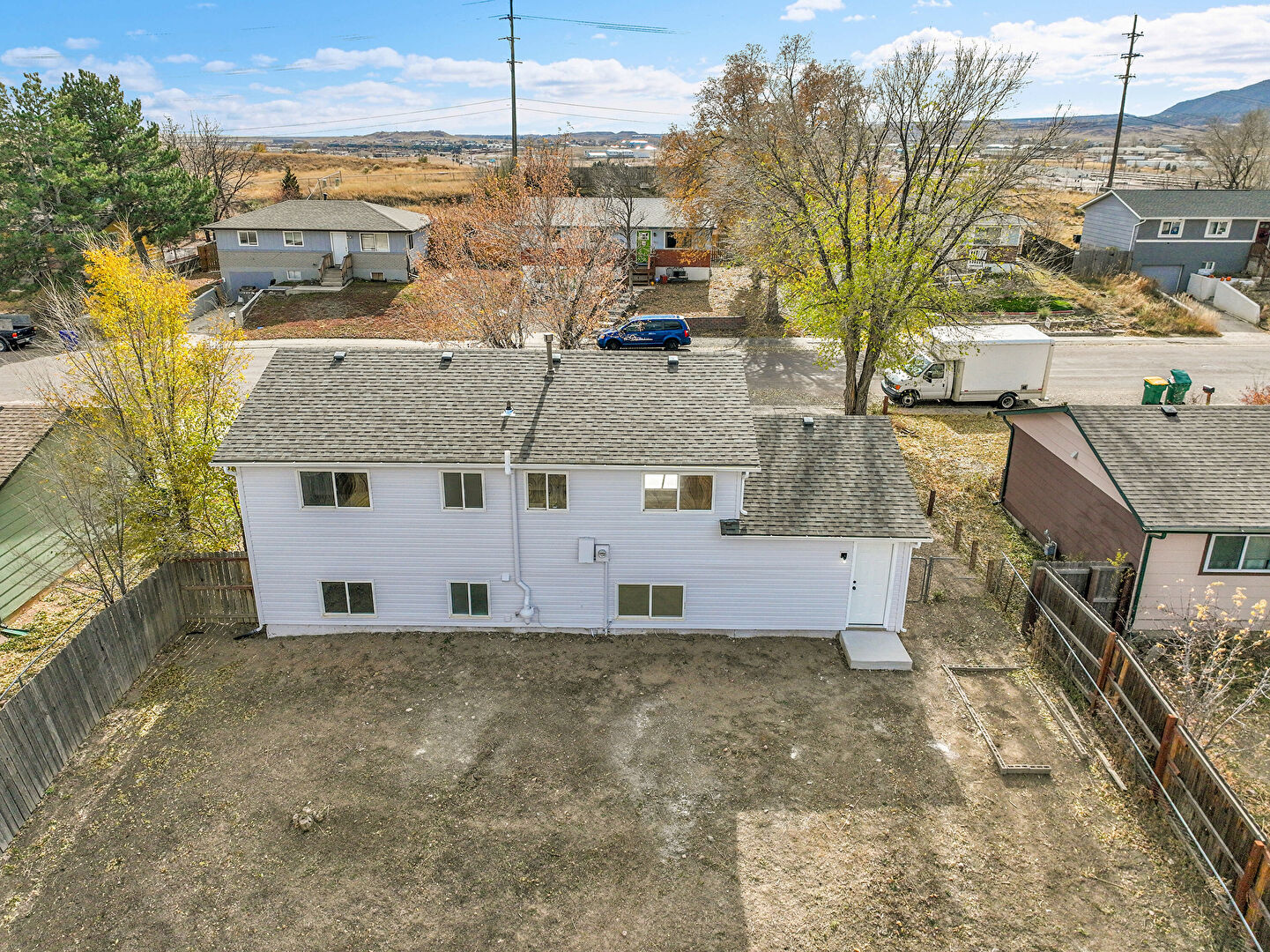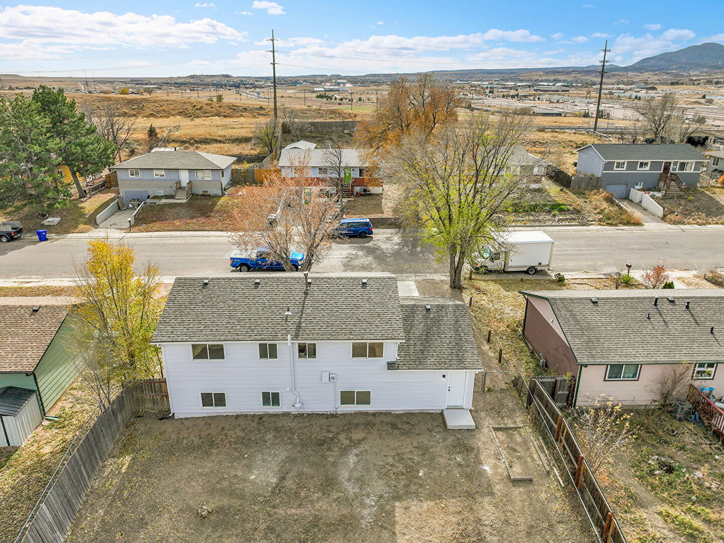 Concrete Foundation, Downspout, Fence, Gate, Gutters, Mountain View, Residential View, Shingle Roof, Horizontal Siding, Mountain View, Residential View