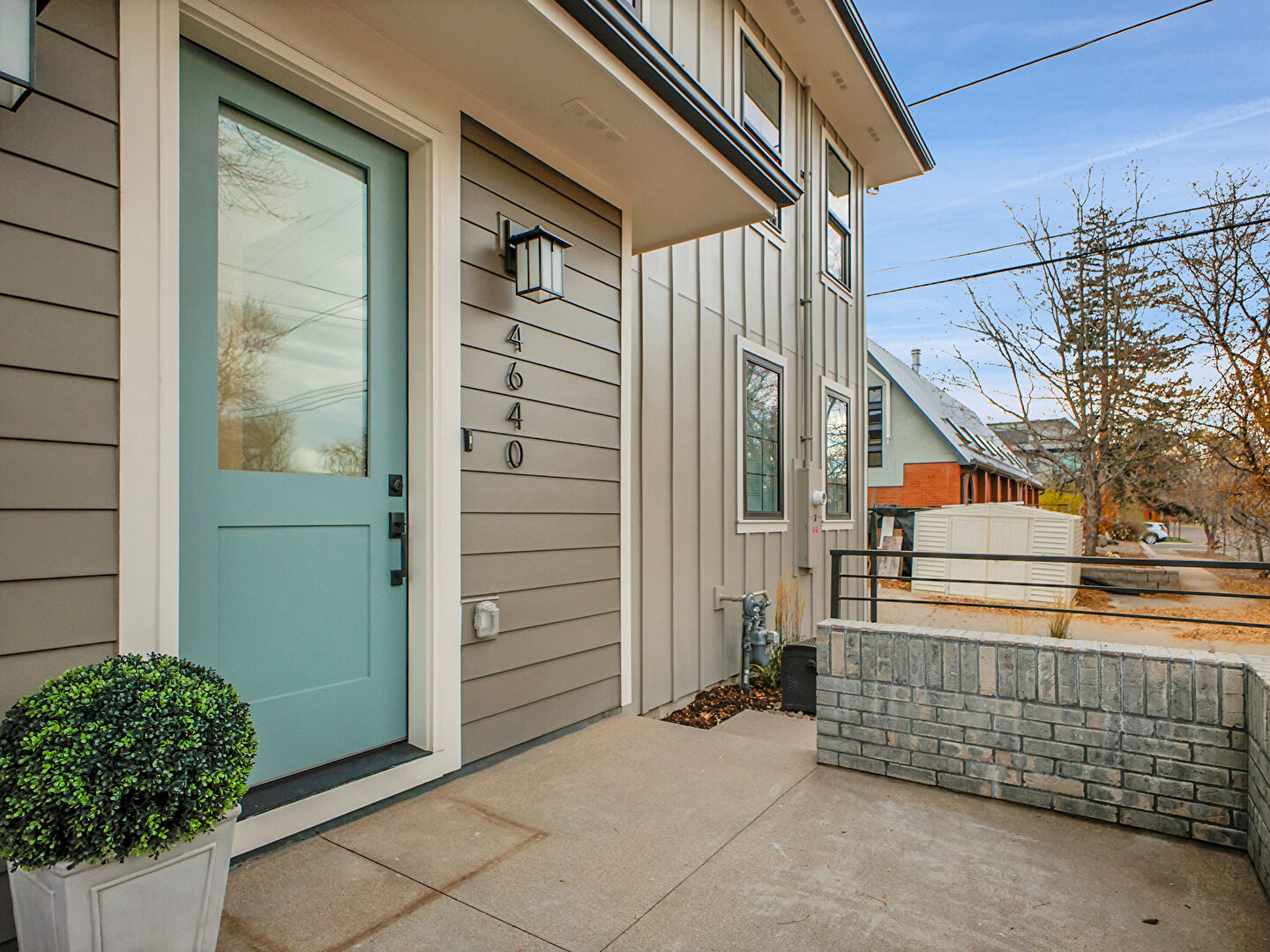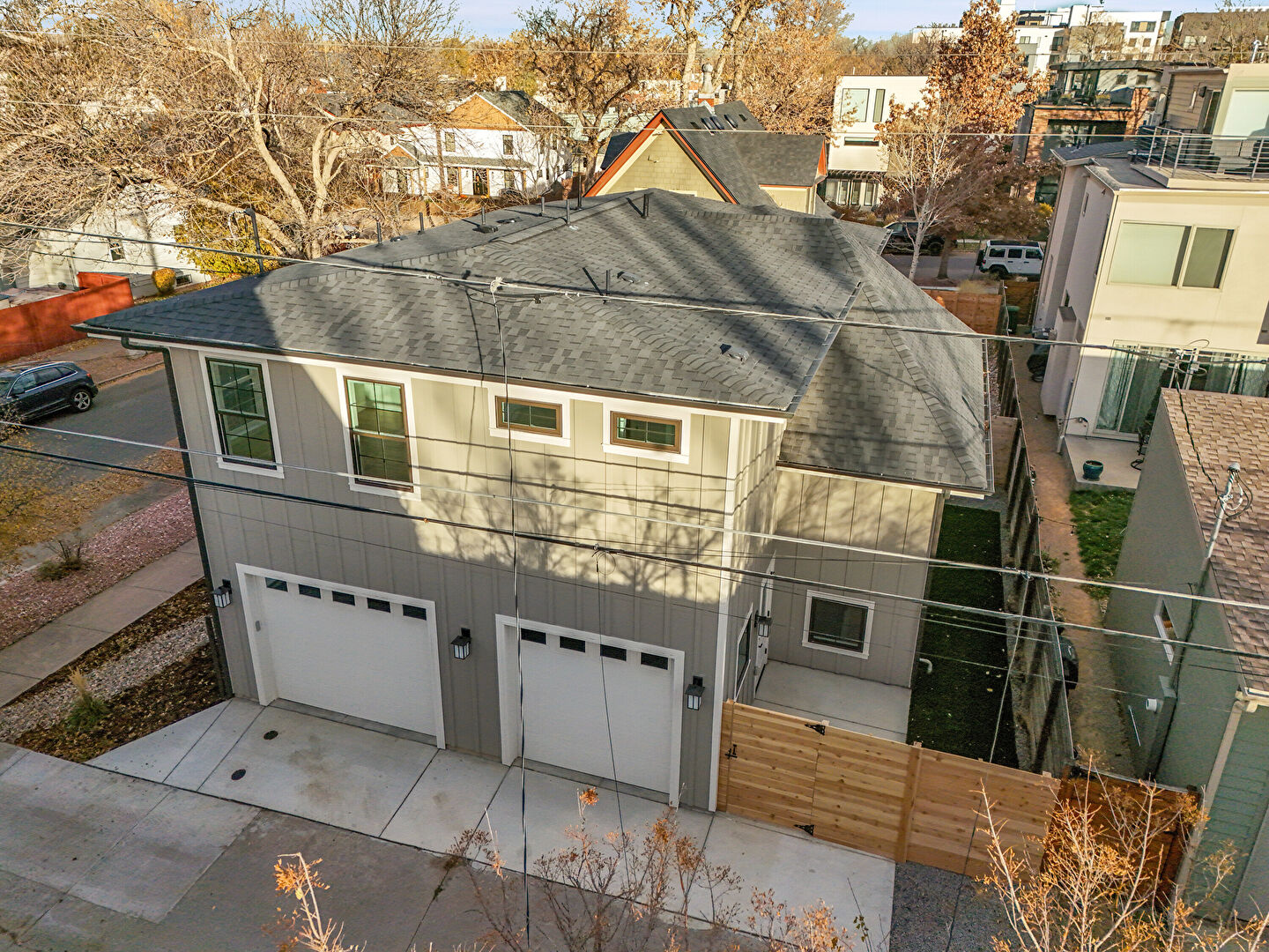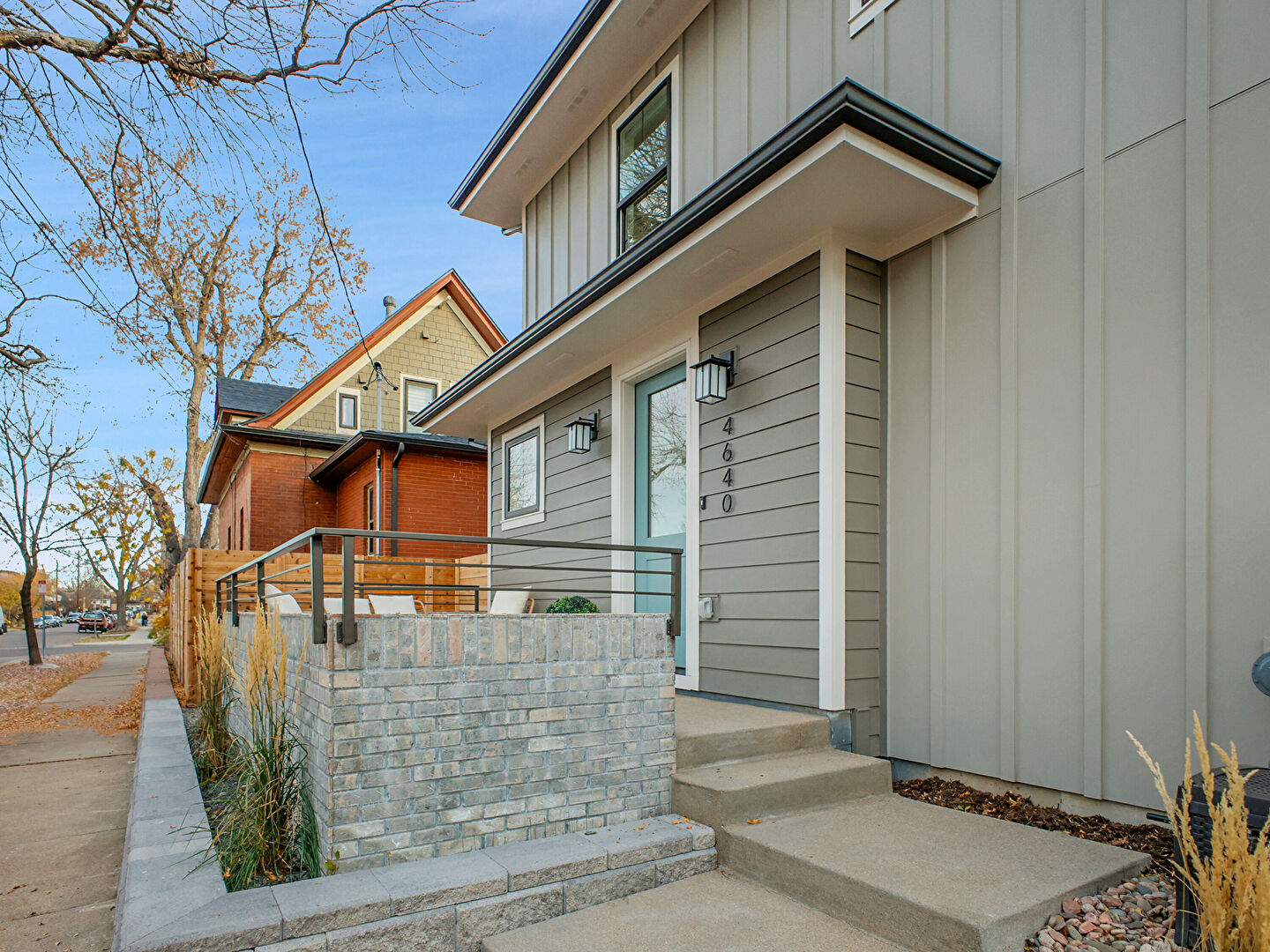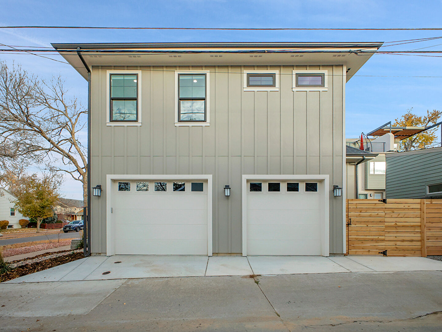 Basement Garage, Board Batten Siding, Built In Garage, Central Ac, Concrete Foundation, Downspout, Driveway, Electric Meter, Fence, Gas Meter, Gutters, Horizontal Siding, Metal Roof, Porch, Residential View, Shingle Roof, Standing Seam Roof, Stoop, Vertical Siding, Basement Garage, Concrete Foundation, Gutters, Horizontal Siding, Vertical Siding
