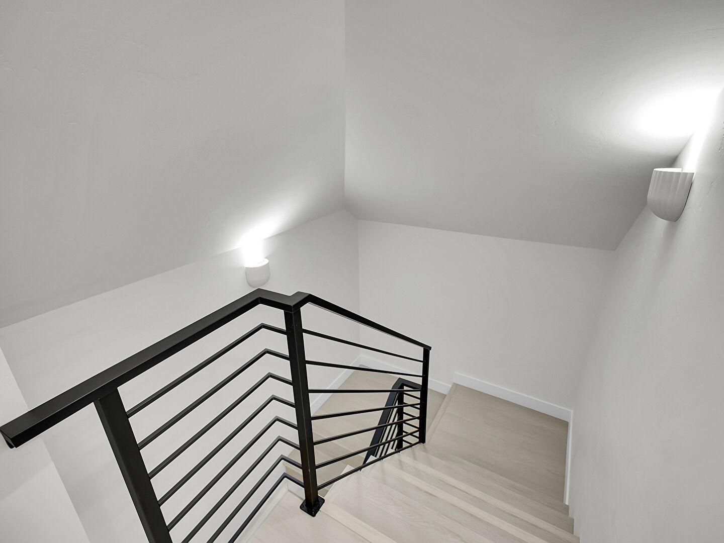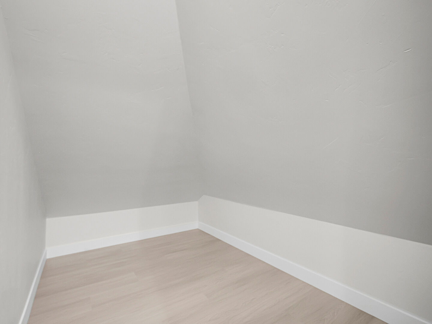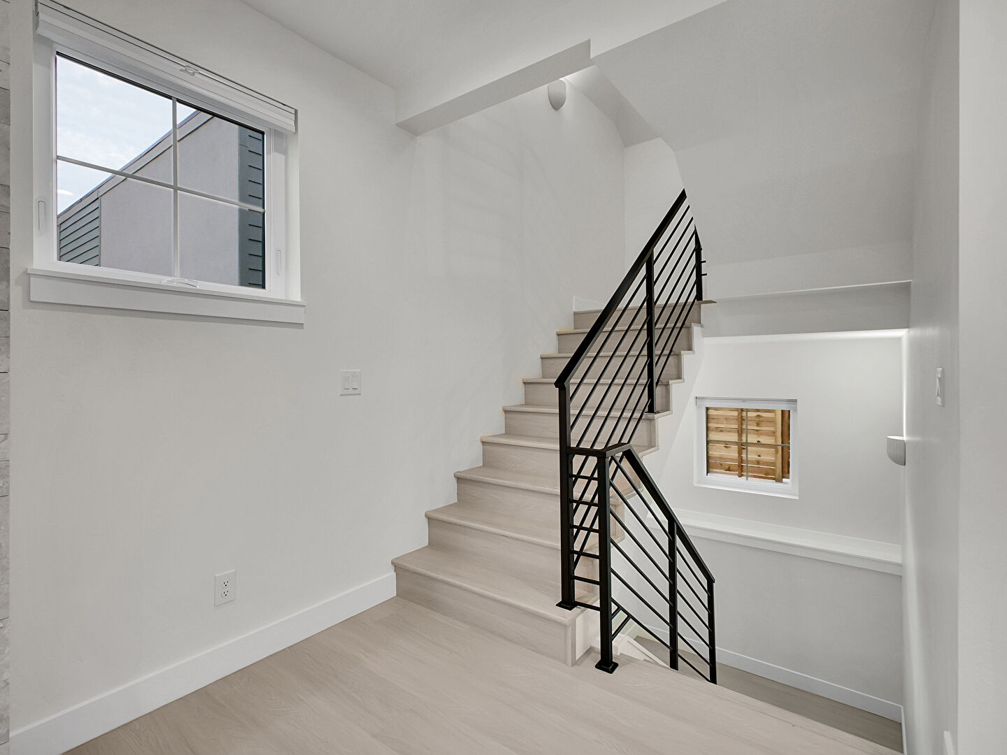 Baseboards Wall, Drywall, Natural Light, Vaulted Ceiling, Wood Finish Floor, Baseboards Wall, Stairs