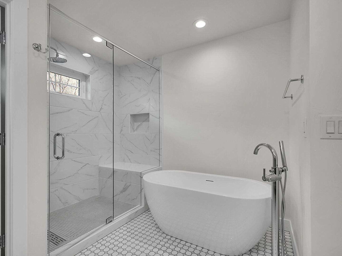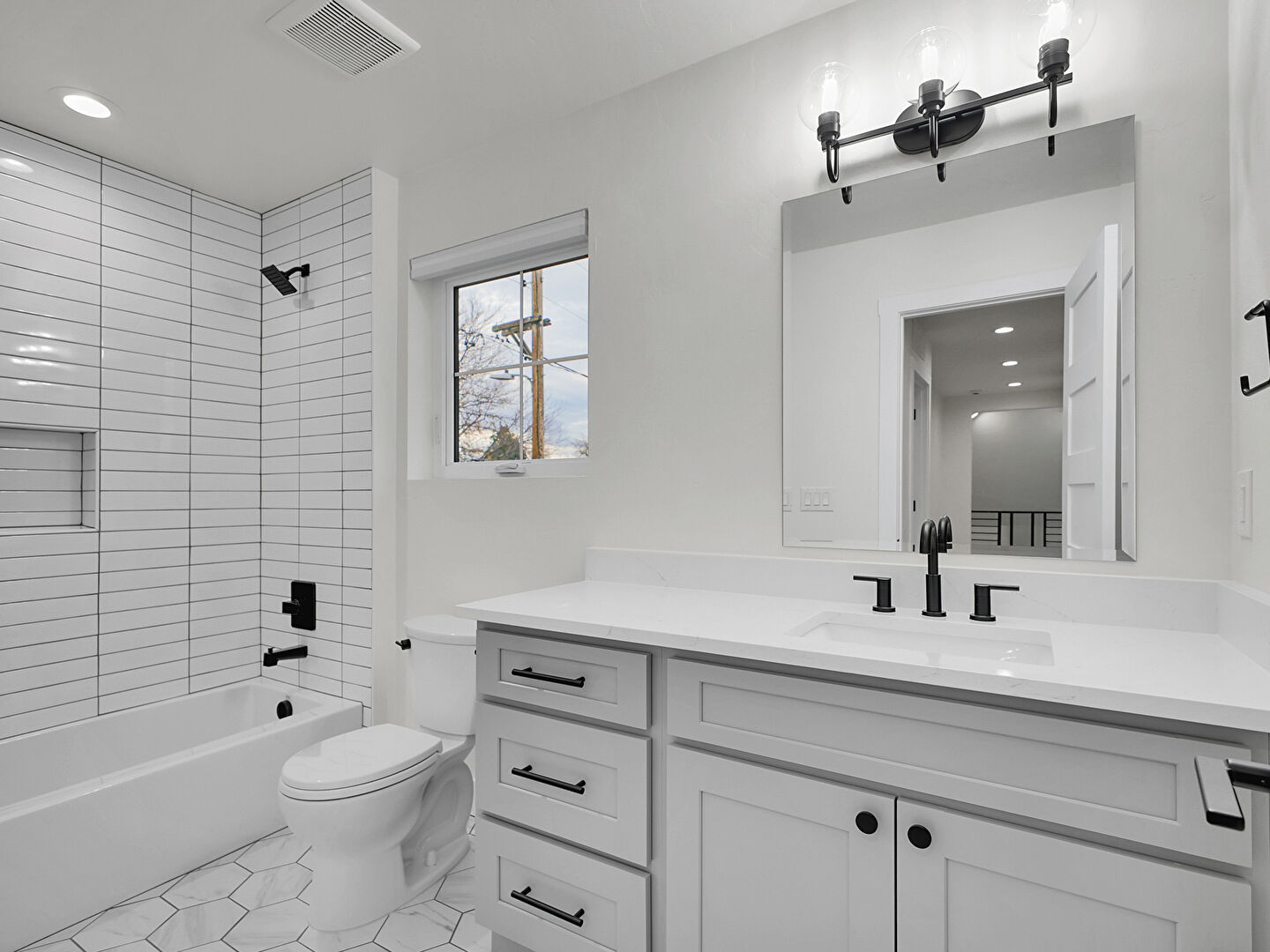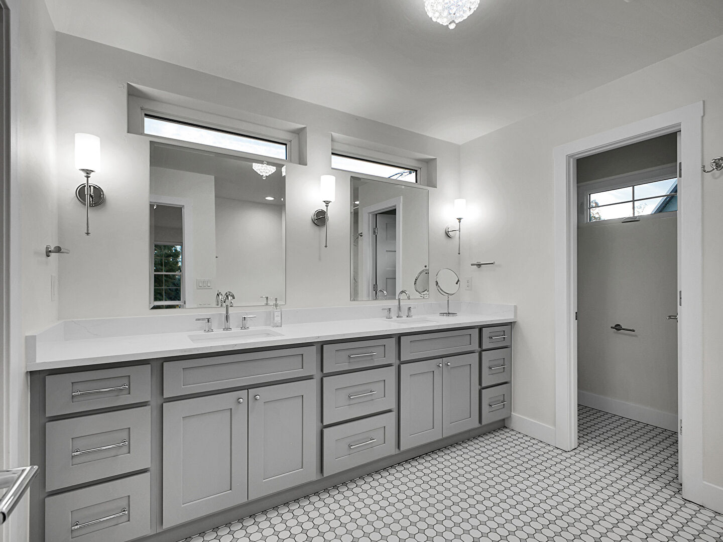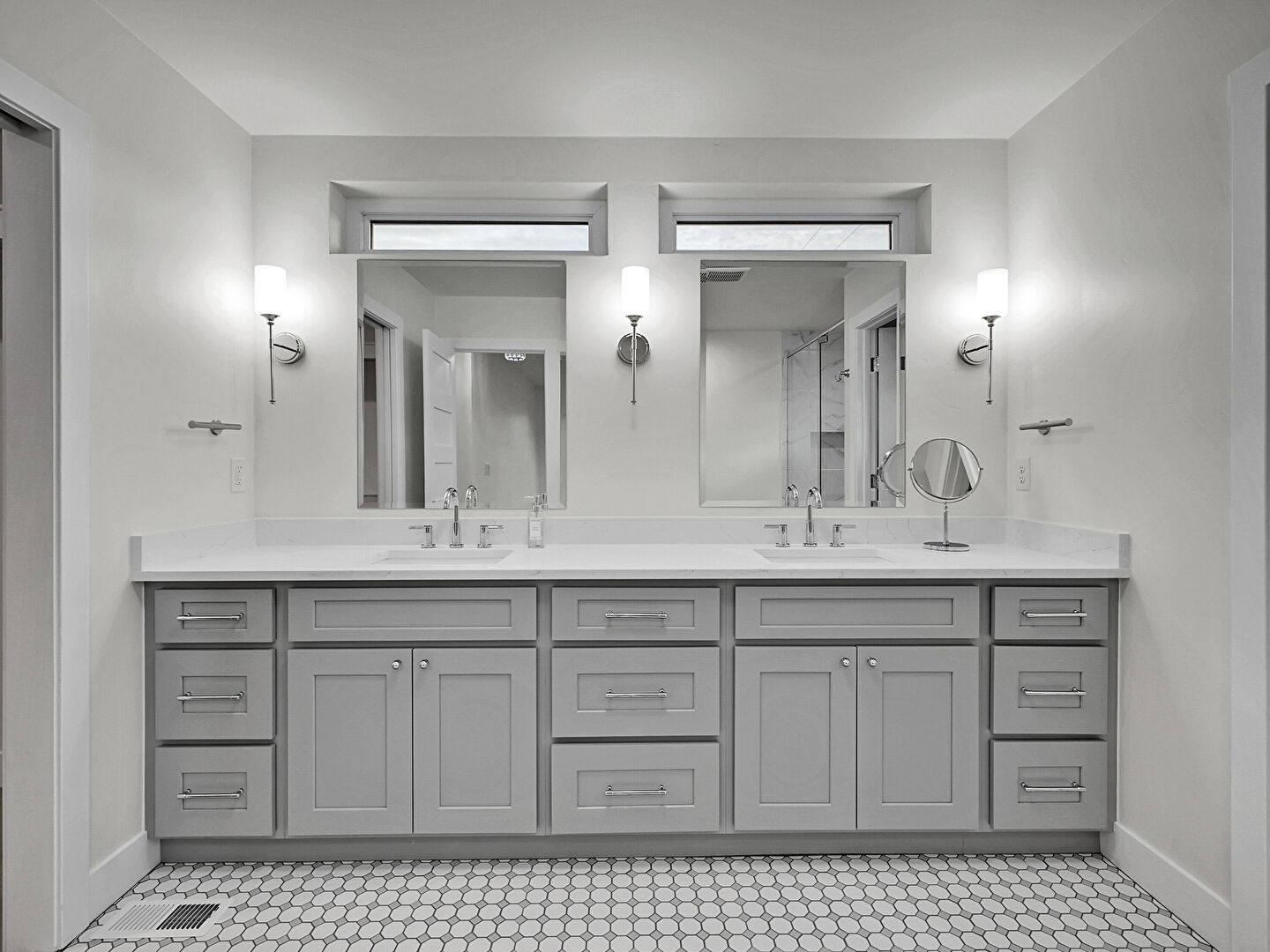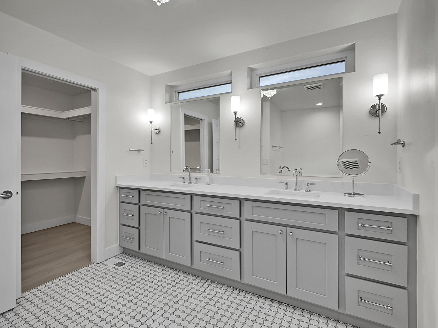 Baseboards Wall, Combined Bath Shower, Double Vanity, Drywall, Full Bathroom, Half Bathroom, Natural Light, Recessed Lighting, Tile Floor, Vanity, Vent, Walk In Closet, Baseboards Wall, Full Bathroom, Natural Light, Recessed Lighting, Vanity, Vent