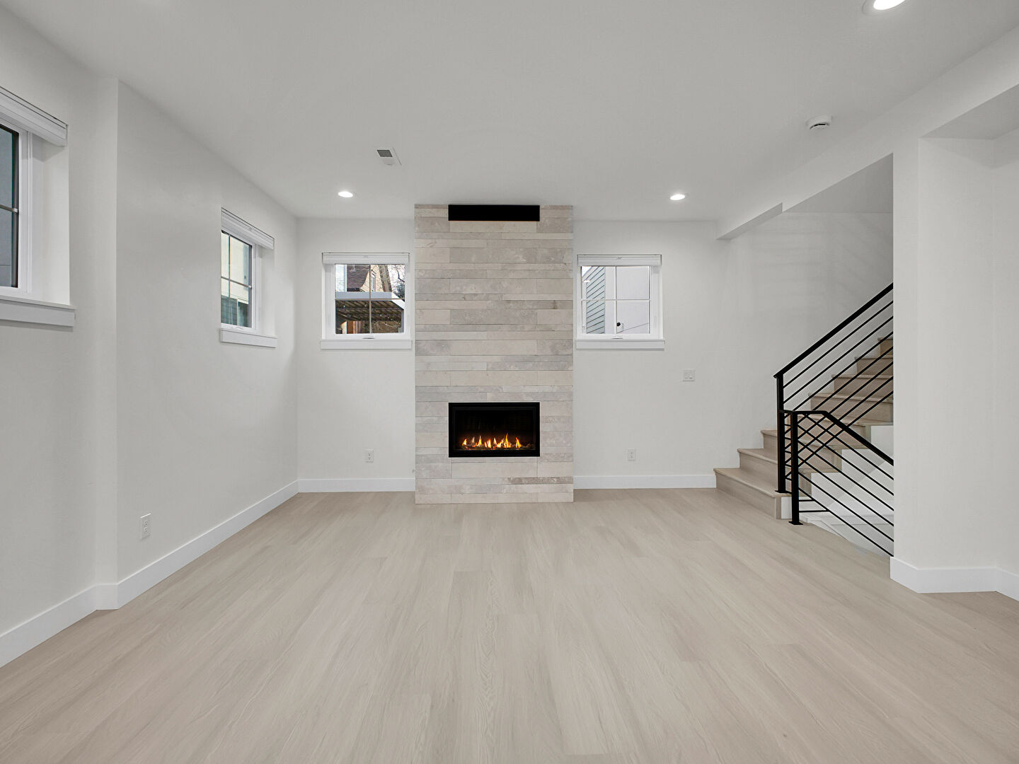Baseboards Wall, Drywall, Fireplace, Natural Light, Recessed Lighting, Stairs, U Shaped Kitchen, Vent, Wood Finish Floor, Recessed Lighting, Stairs, Vent