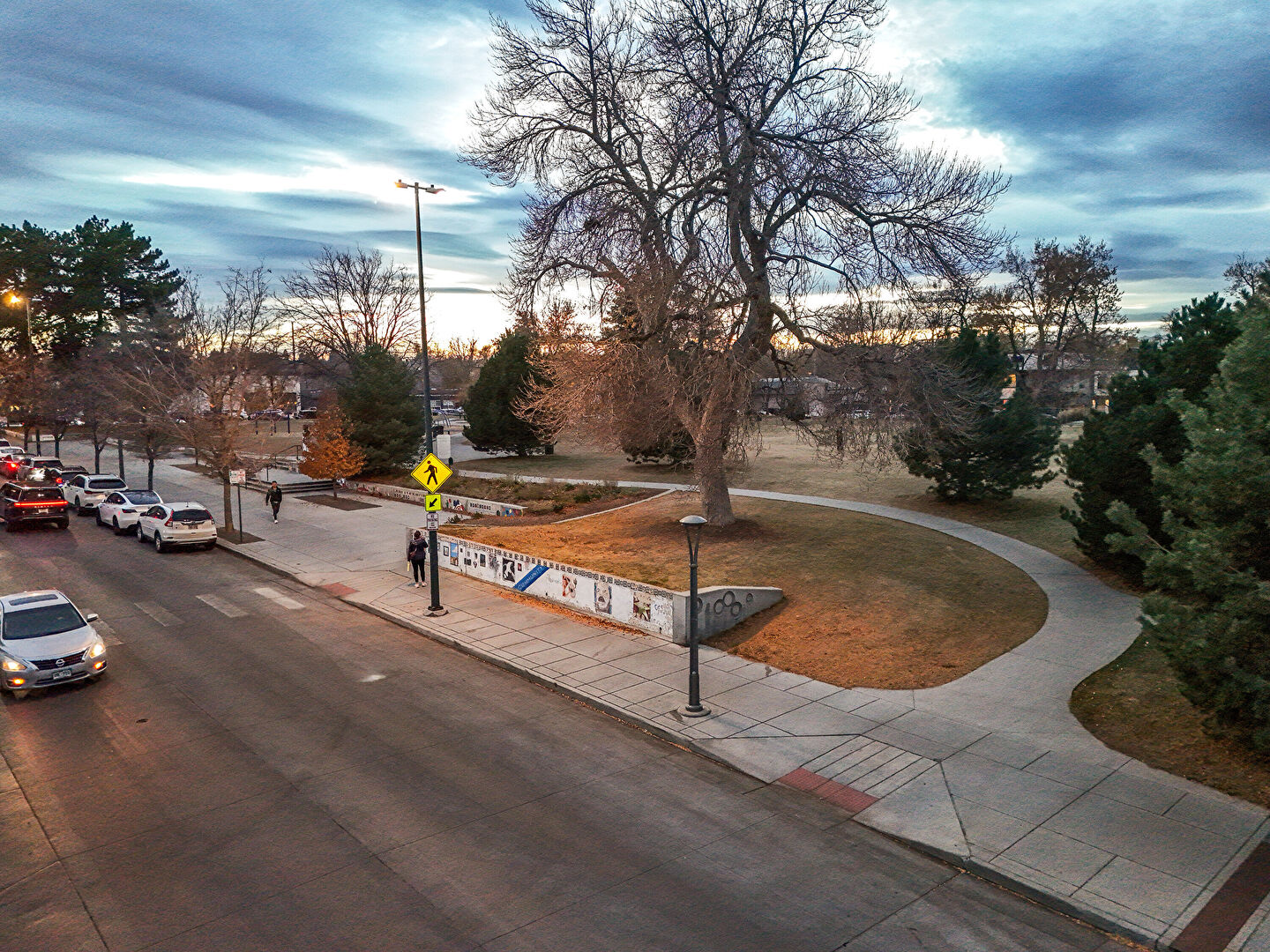 Curbs, Sidewalks, Street, Street Lights, Traffic Signs, Stairs, Street, Street Lights, Traffic Signs