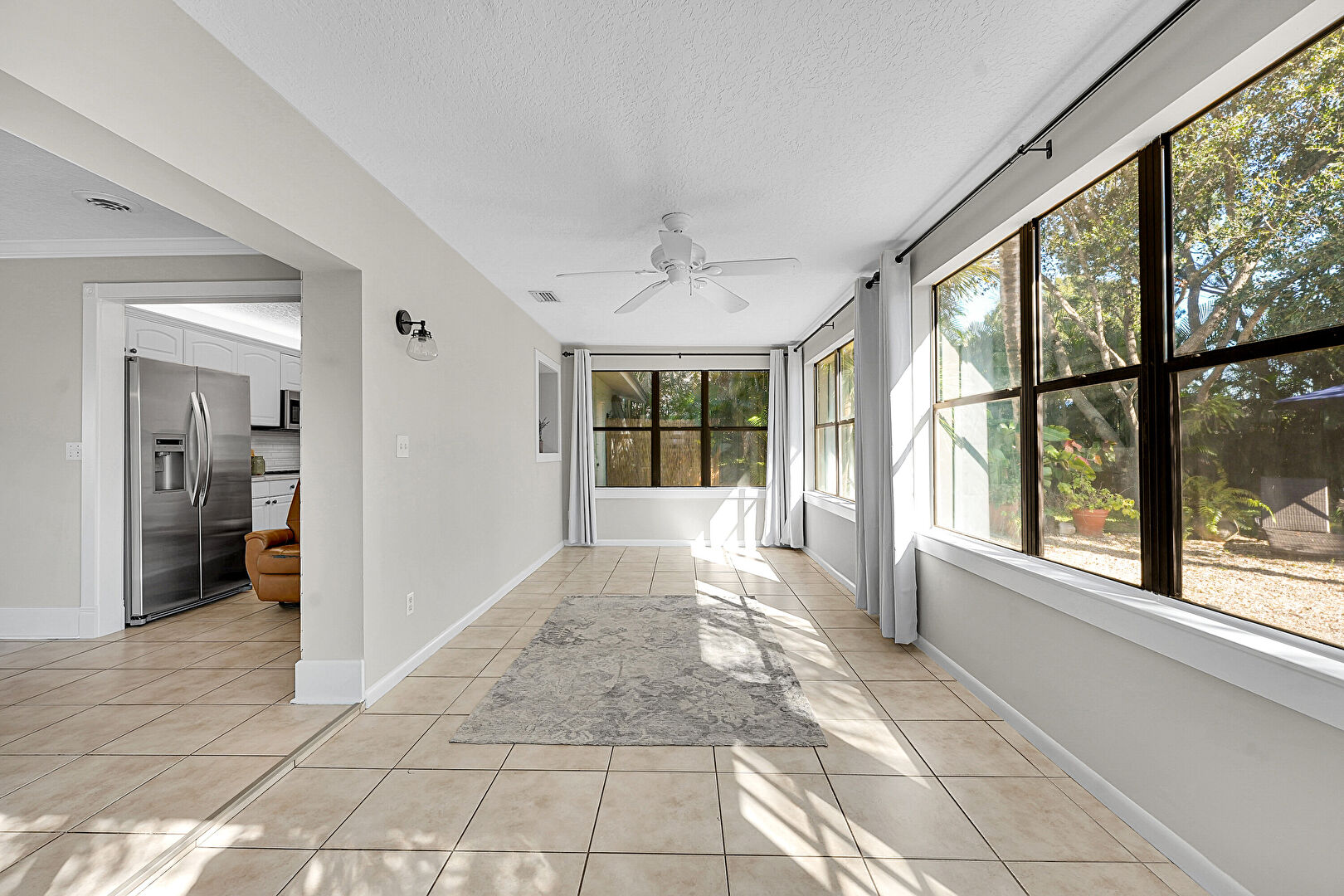 Baseboards Wall, Ceiling Fan, Crown Molding, Drywall, Natural Light, Textured Ceiling, Tile Floor, Vent, Baseboards Wall, Textured Ceiling, Vent
