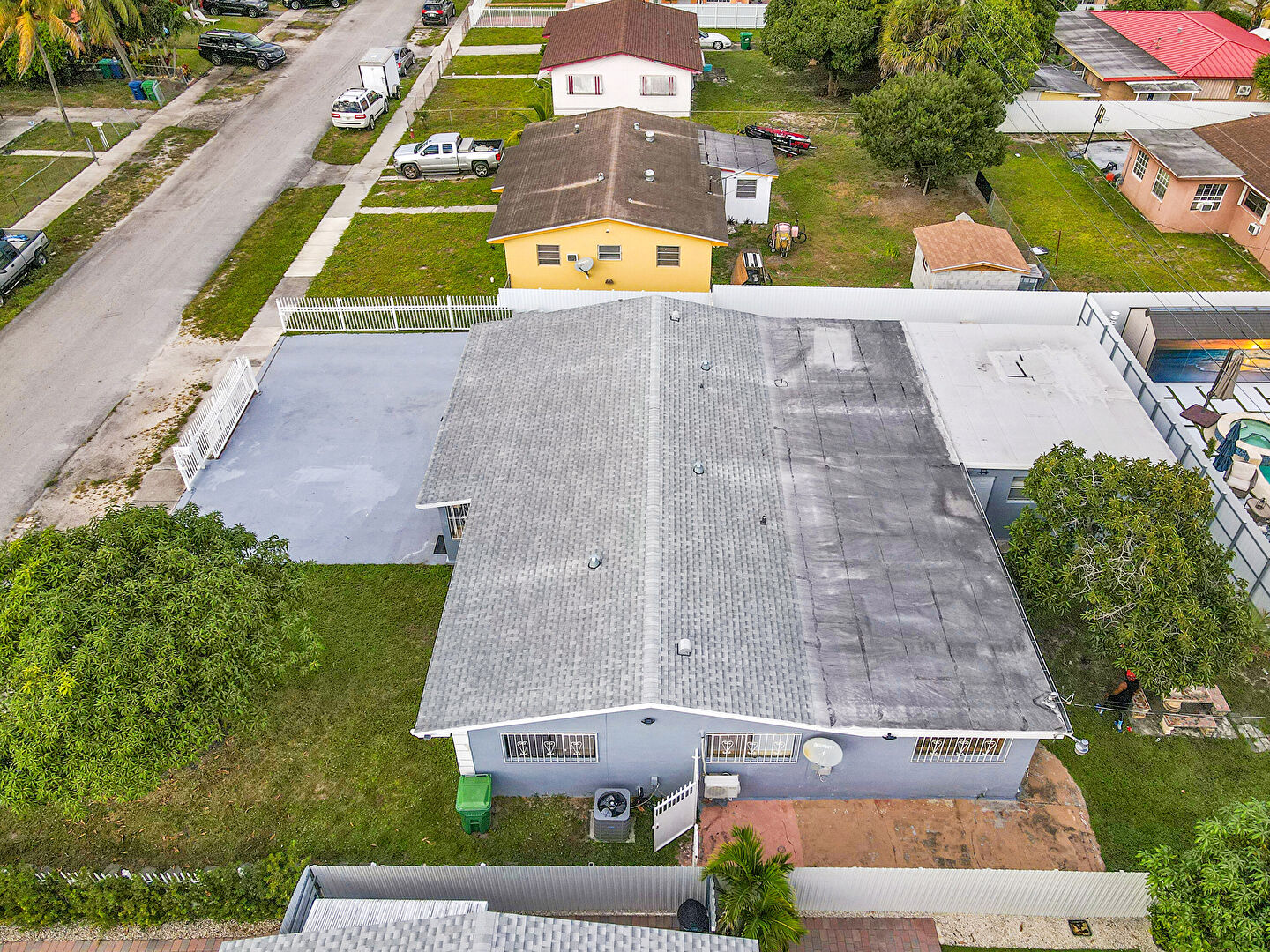 Downspout, Electric Meter, Fence, Gutters, Lawn, Patio, Stucco Siding
