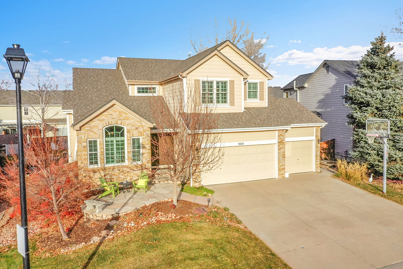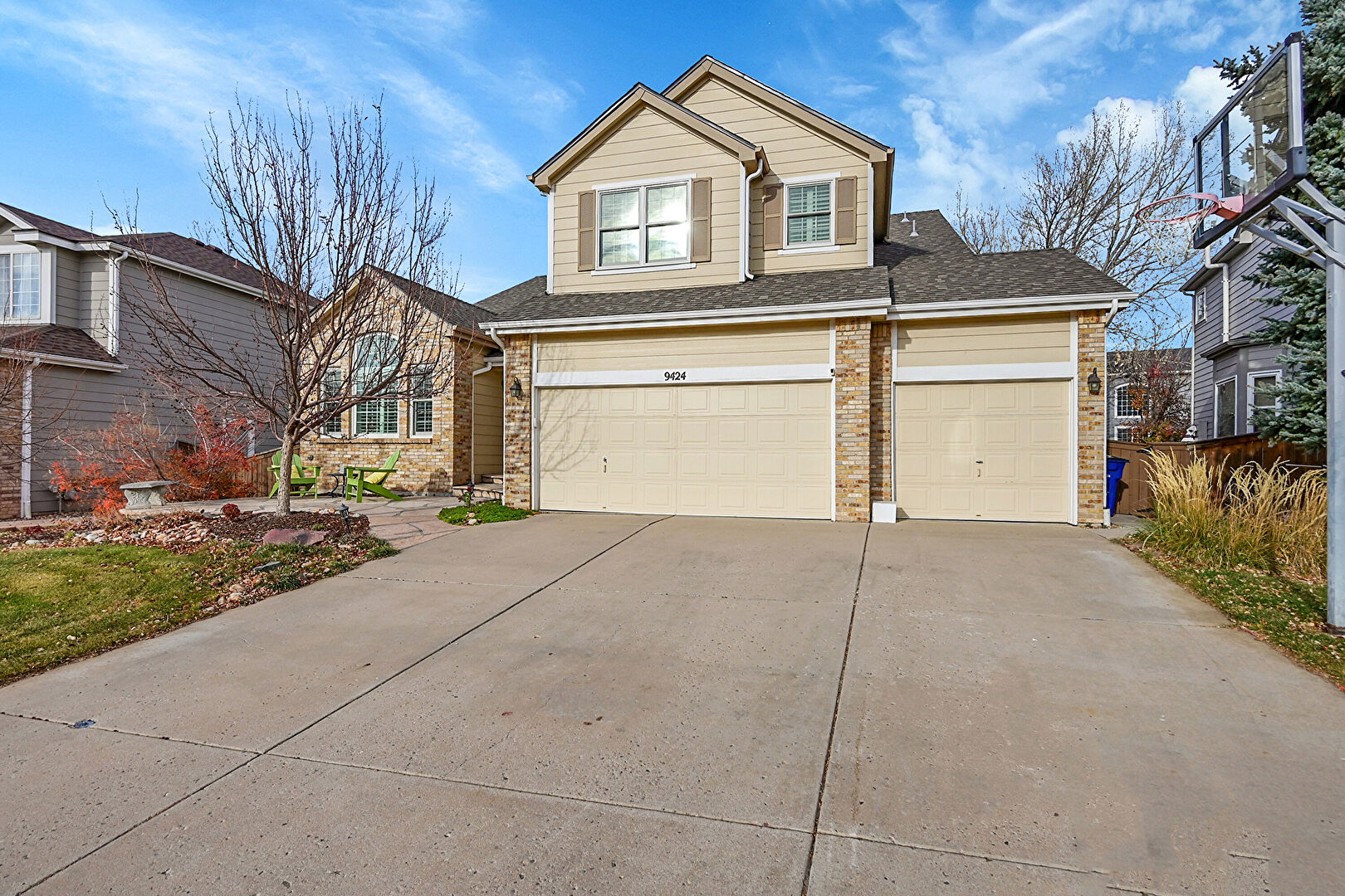 Brick Siding, Built In Garage, Concrete Foundation, Downspout, Driveway, Fence, Horizontal Siding, Patio, Gutters
