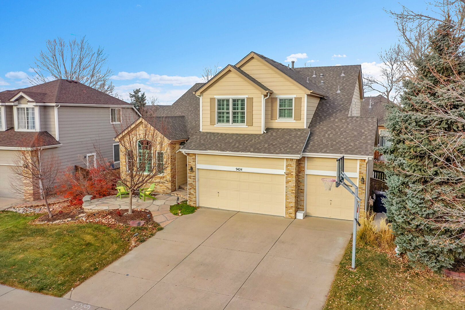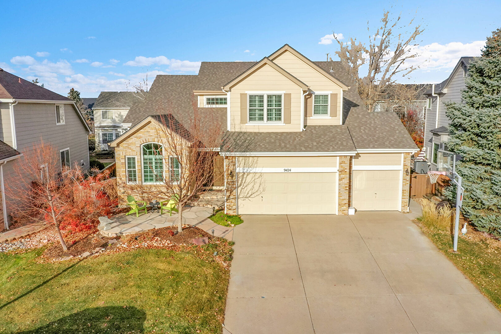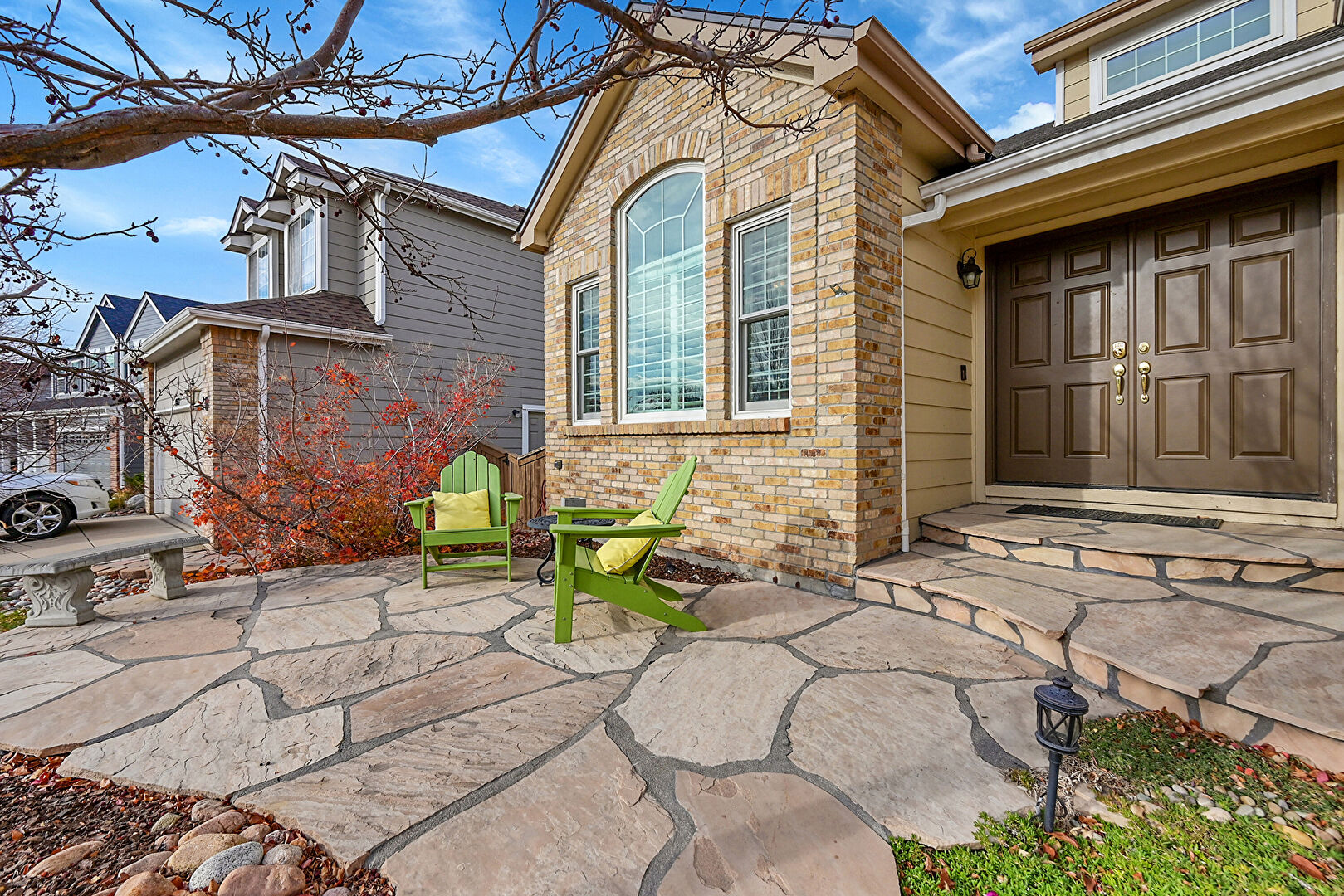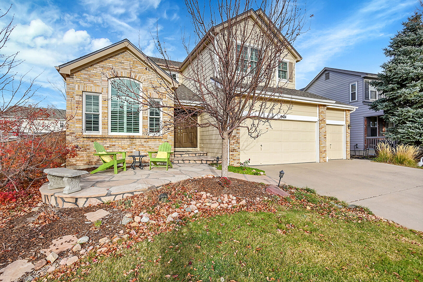 Brick Siding, Downspout, Gutters, Horizontal Siding, Patio, Stone Siding