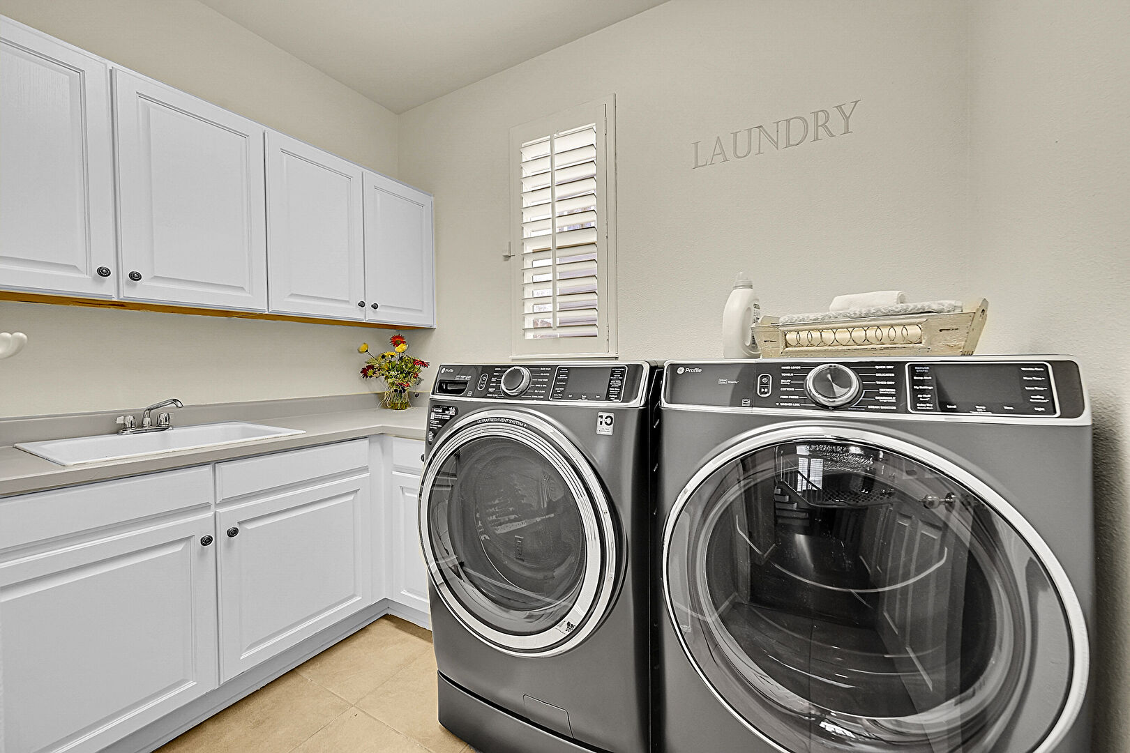 Laundry, Natural Light, Tile Floor, Drywall