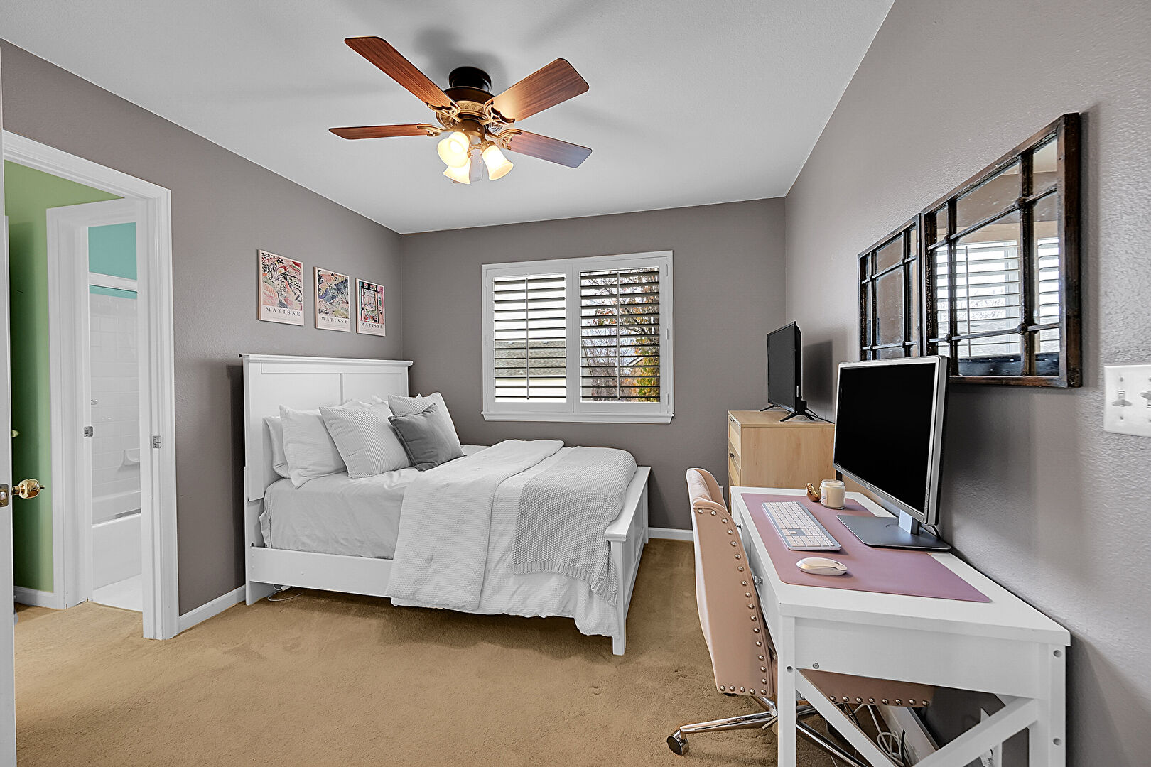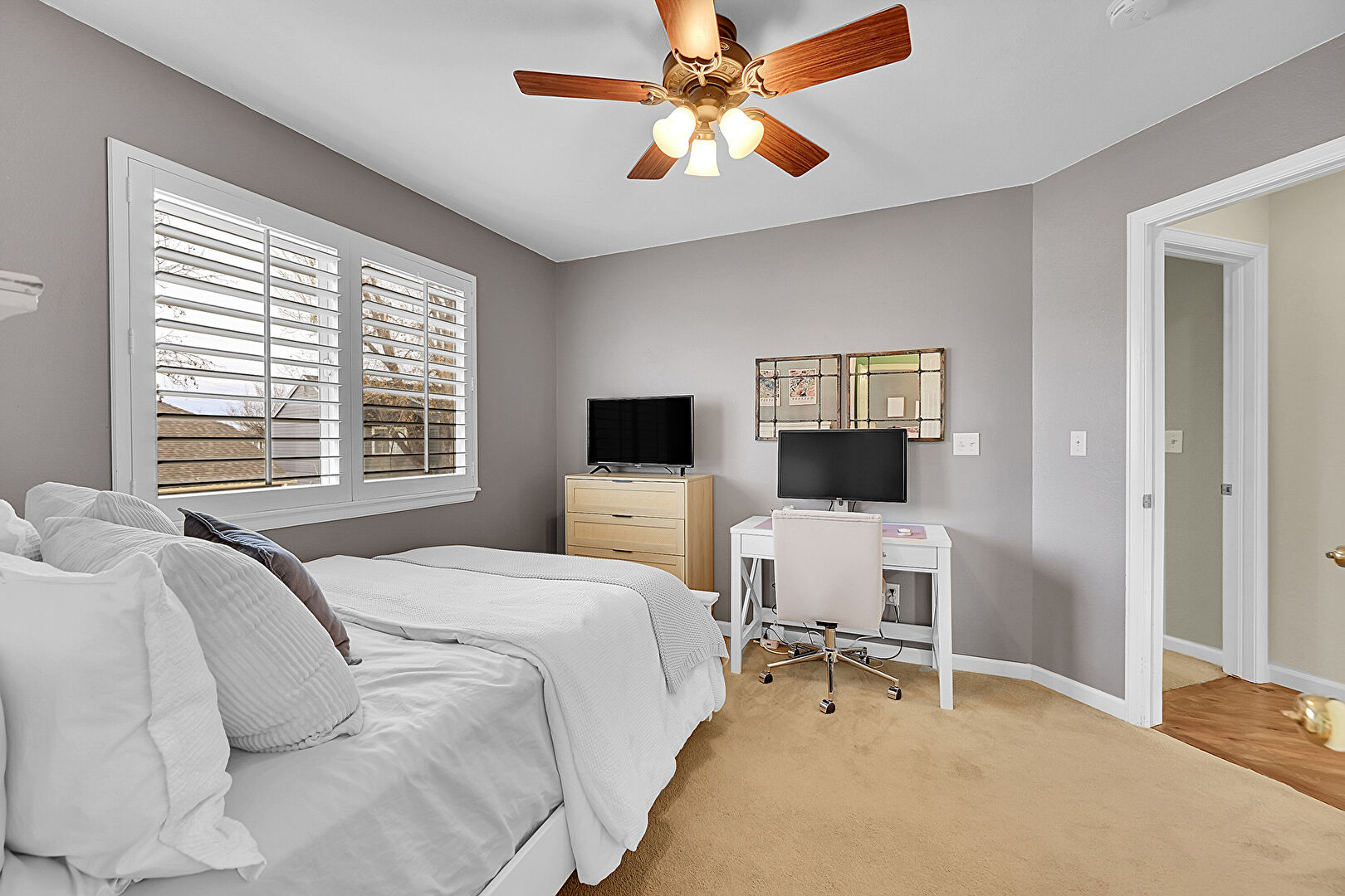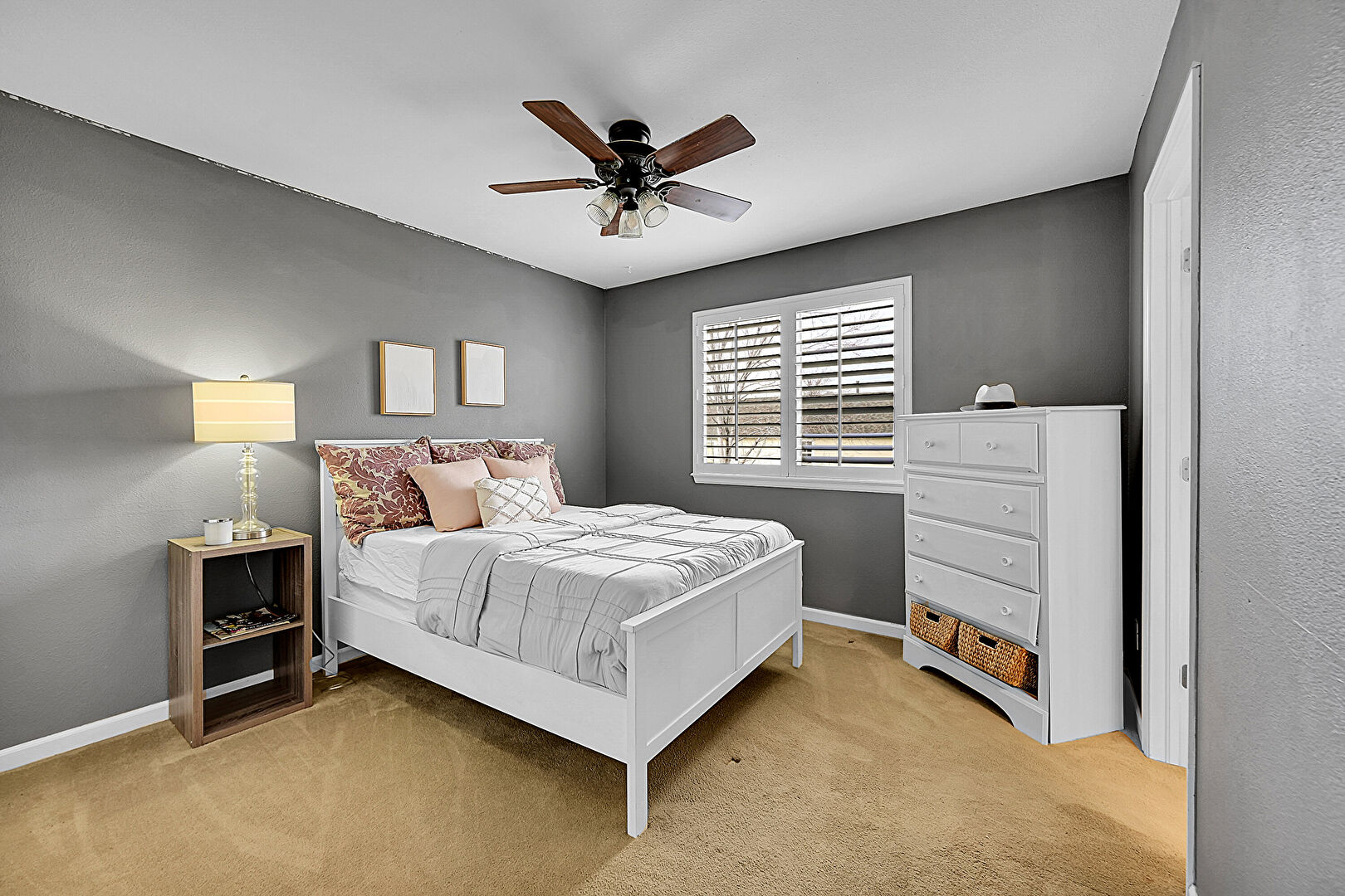 Baseboards Wall, Ceiling Fan, Drywall, Natural Light, Carpet