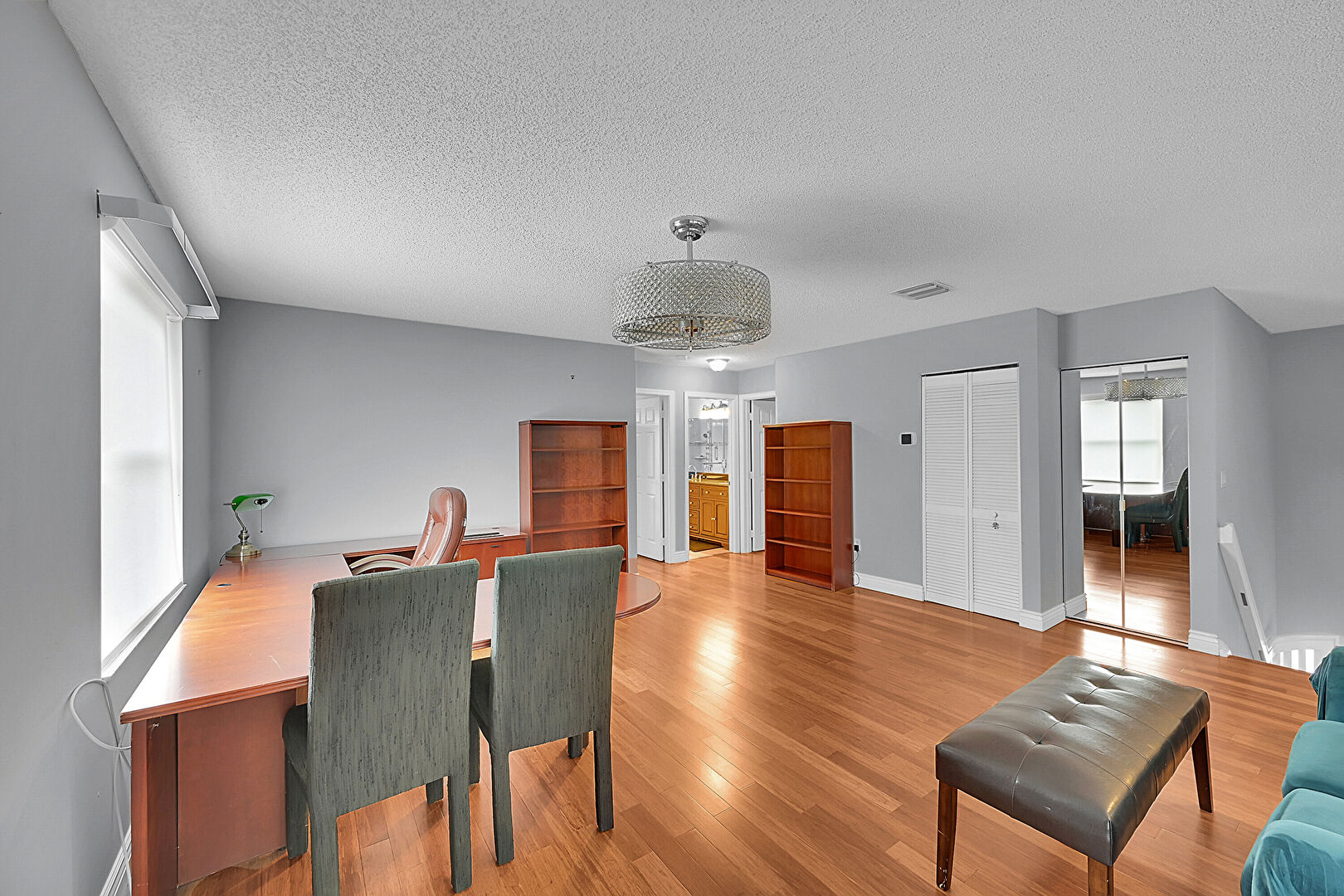 Baseboards Wall, Drywall, Natural Light, Office Area, Textured Ceiling, Vent, Wood Finish Floor, Baseboards Wall, Vent