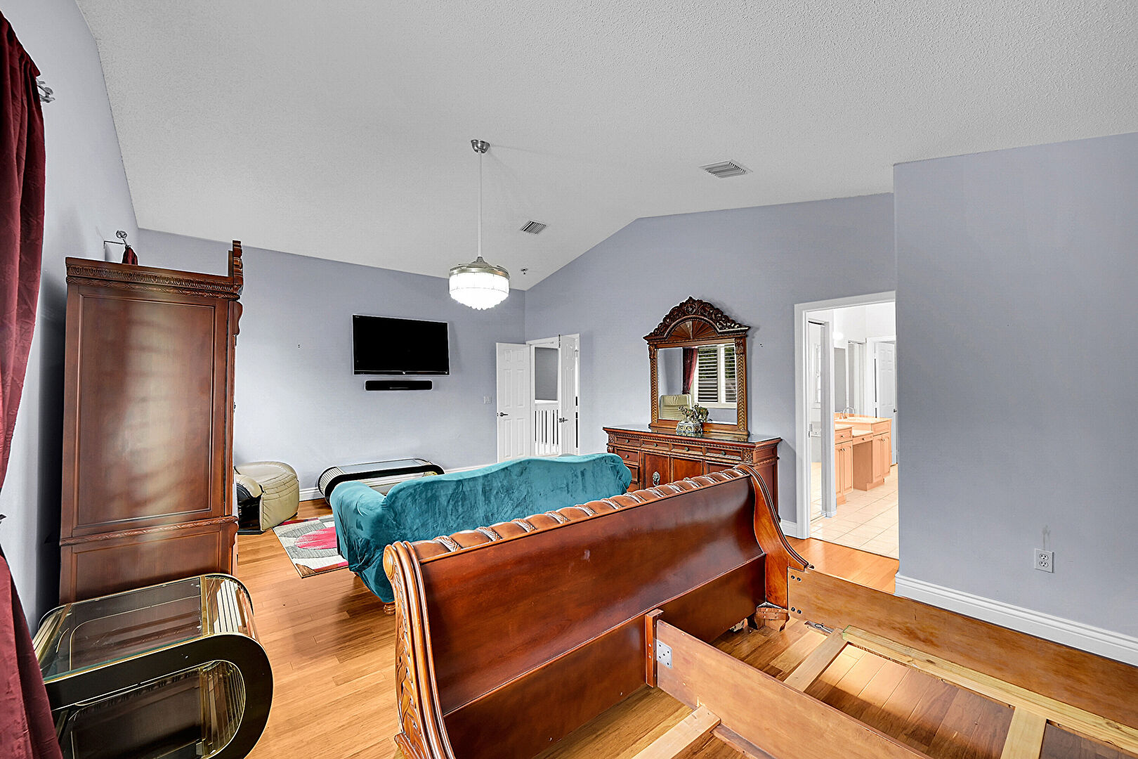 Baseboards Wall, Drywall, Ensuite Bathroom, Natural Light, Textured Ceiling, Vaulted Ceiling, Vent, Wood Finish Floor, Natural Light, Vent, Wood Finish Floor