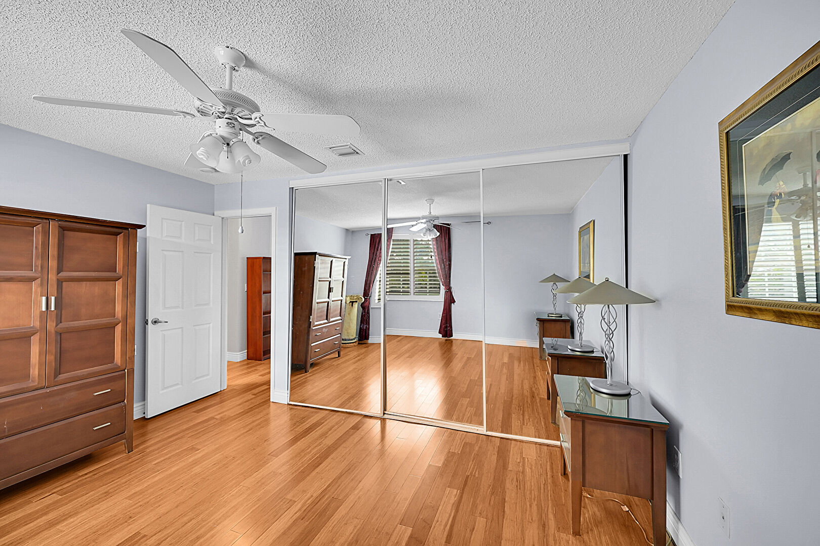Baseboards Wall, Ceiling Fan, Closet, Drywall, Natural Light, Textured Ceiling, Vent, Wood Finish Floor, Ceiling Fan, Drywall