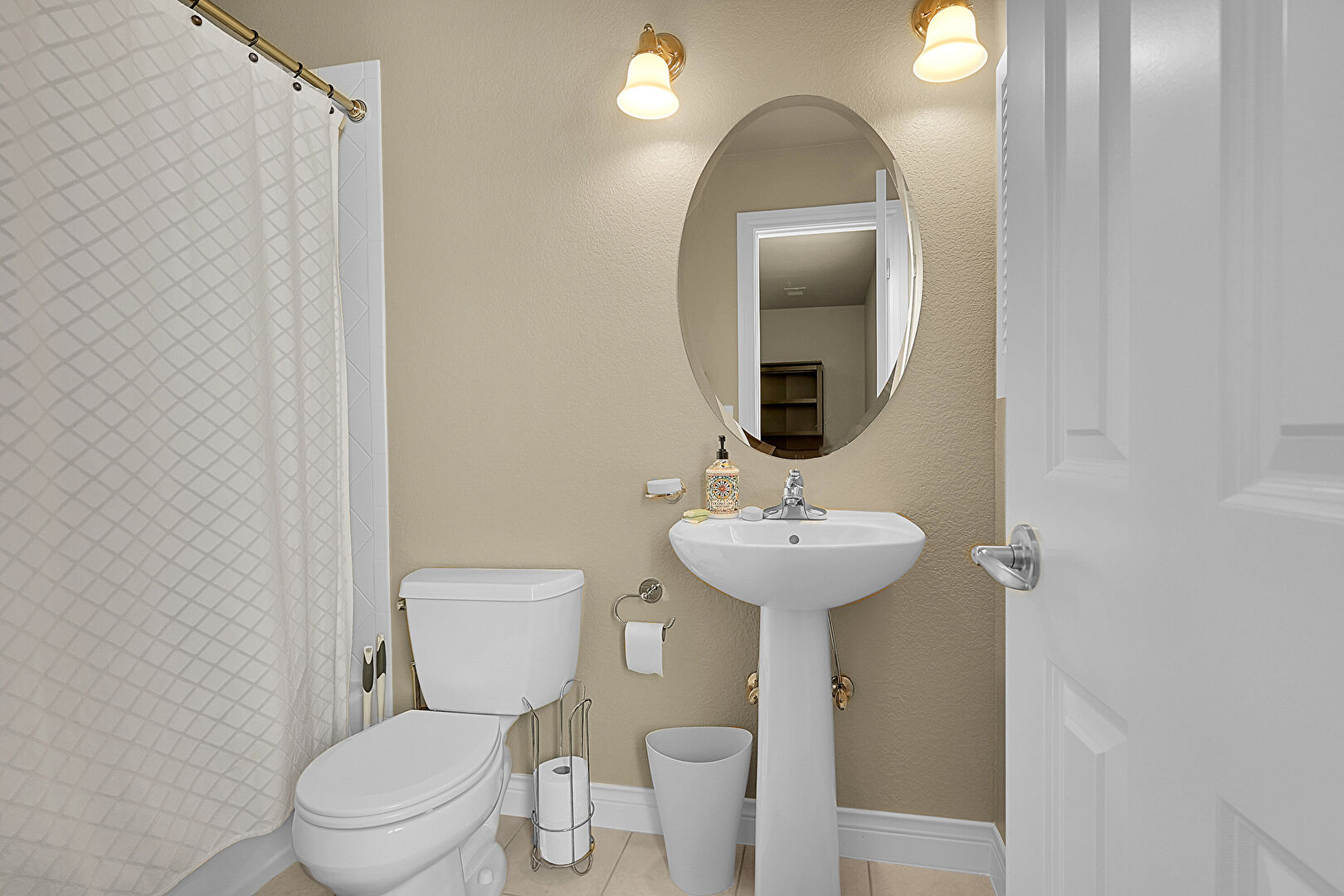 Baseboards Wall, Full Bathroom, Half Bathroom, Textured Wall, Tile Floor, Vent, Baseboards Wall, Concrete Floor