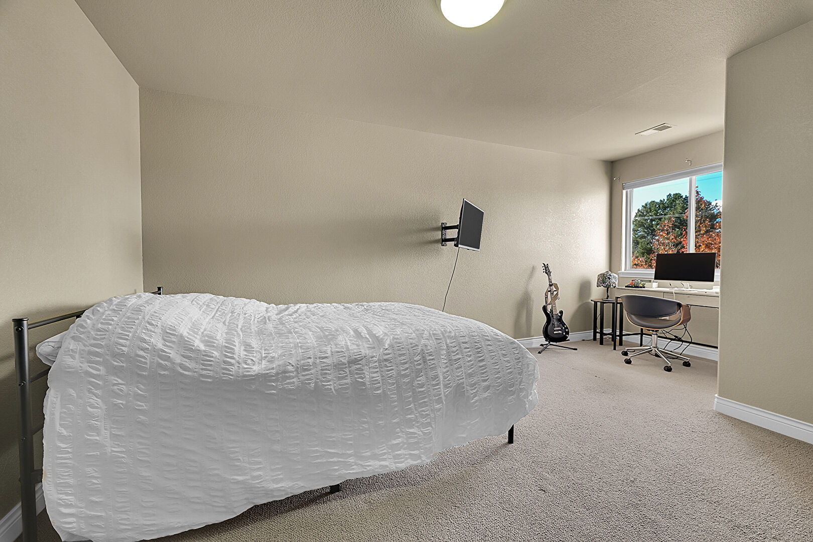 Baseboards Wall, Drywall, Natural Light, Smoke Carbon Monoxide Detector, Textured Ceiling, Vent, Carpet