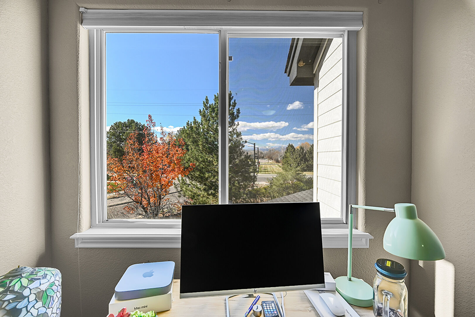 Baseboards Wall, Drywall, Natural Light, Office Area, Textured Ceiling, Vent, Carpet