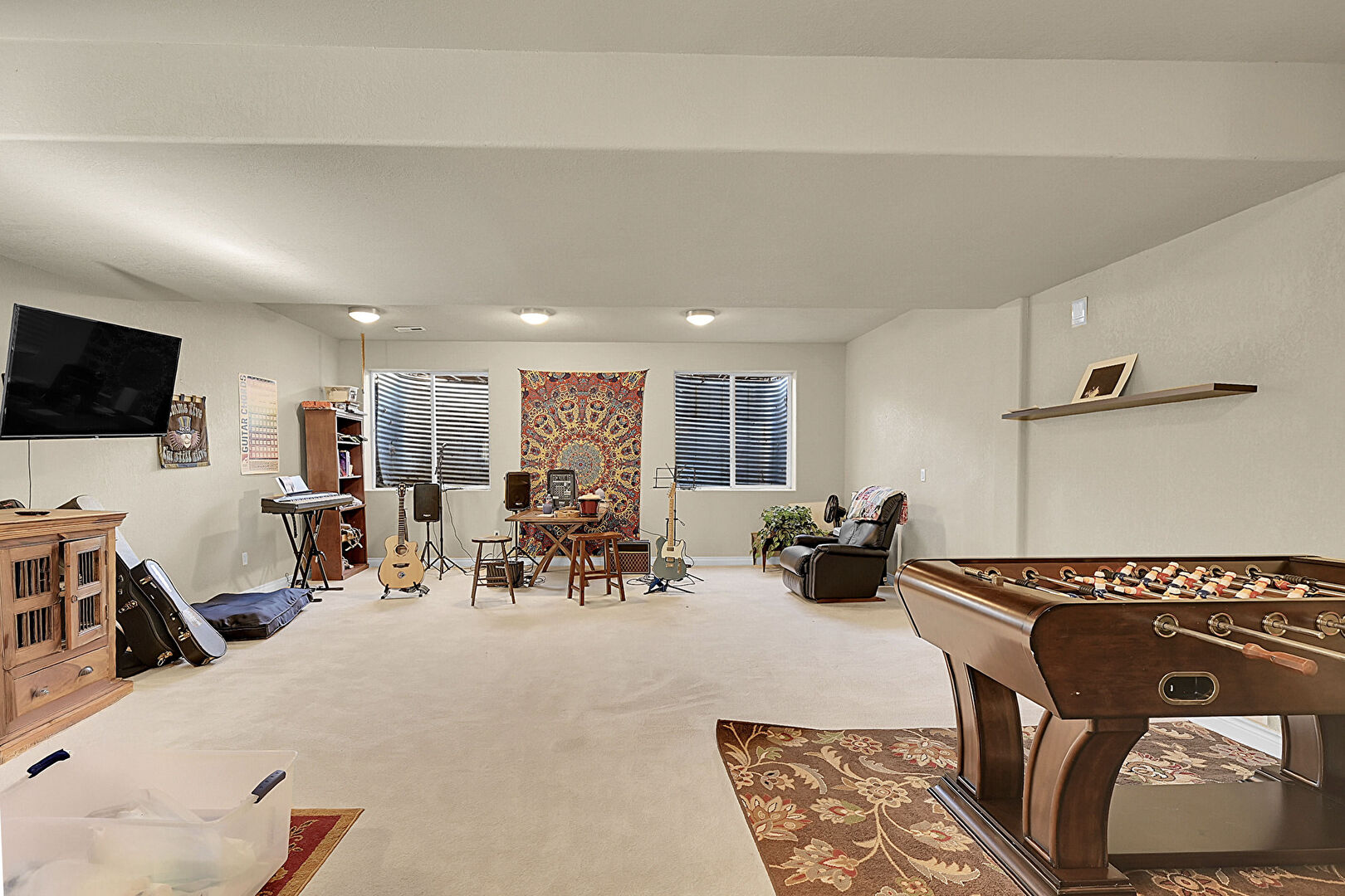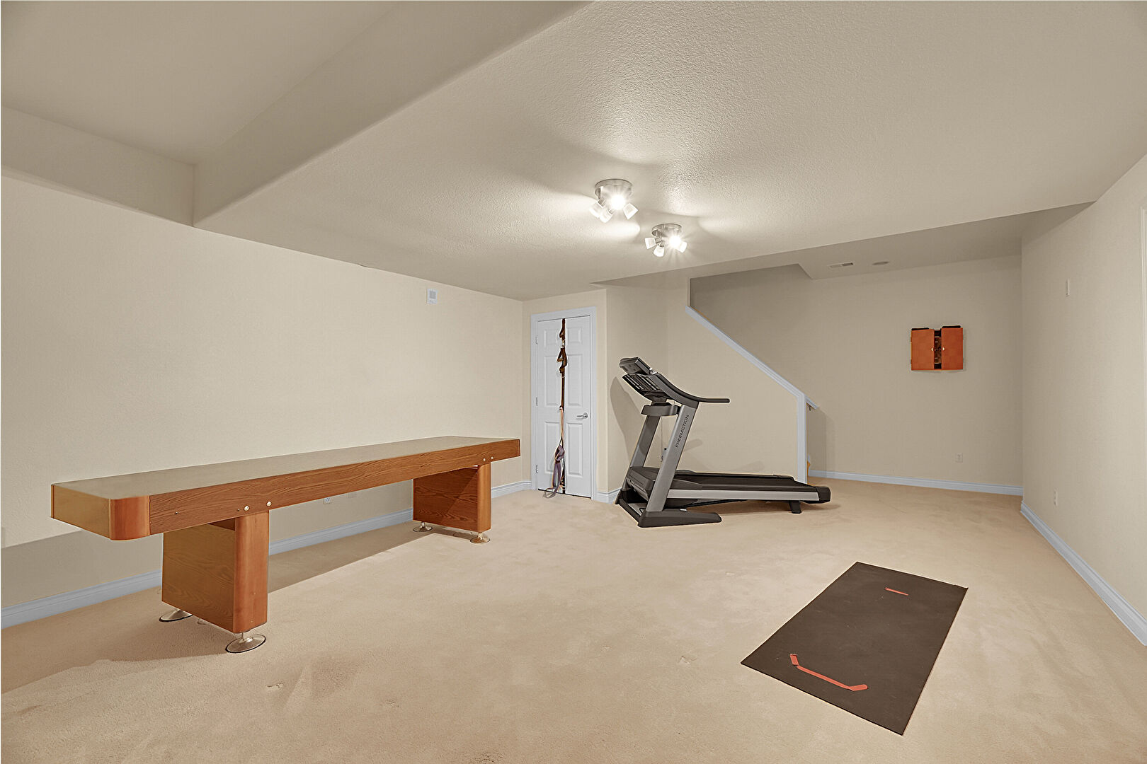 Baseboards Wall, Basement, Drywall, Textured Ceiling, Carpet