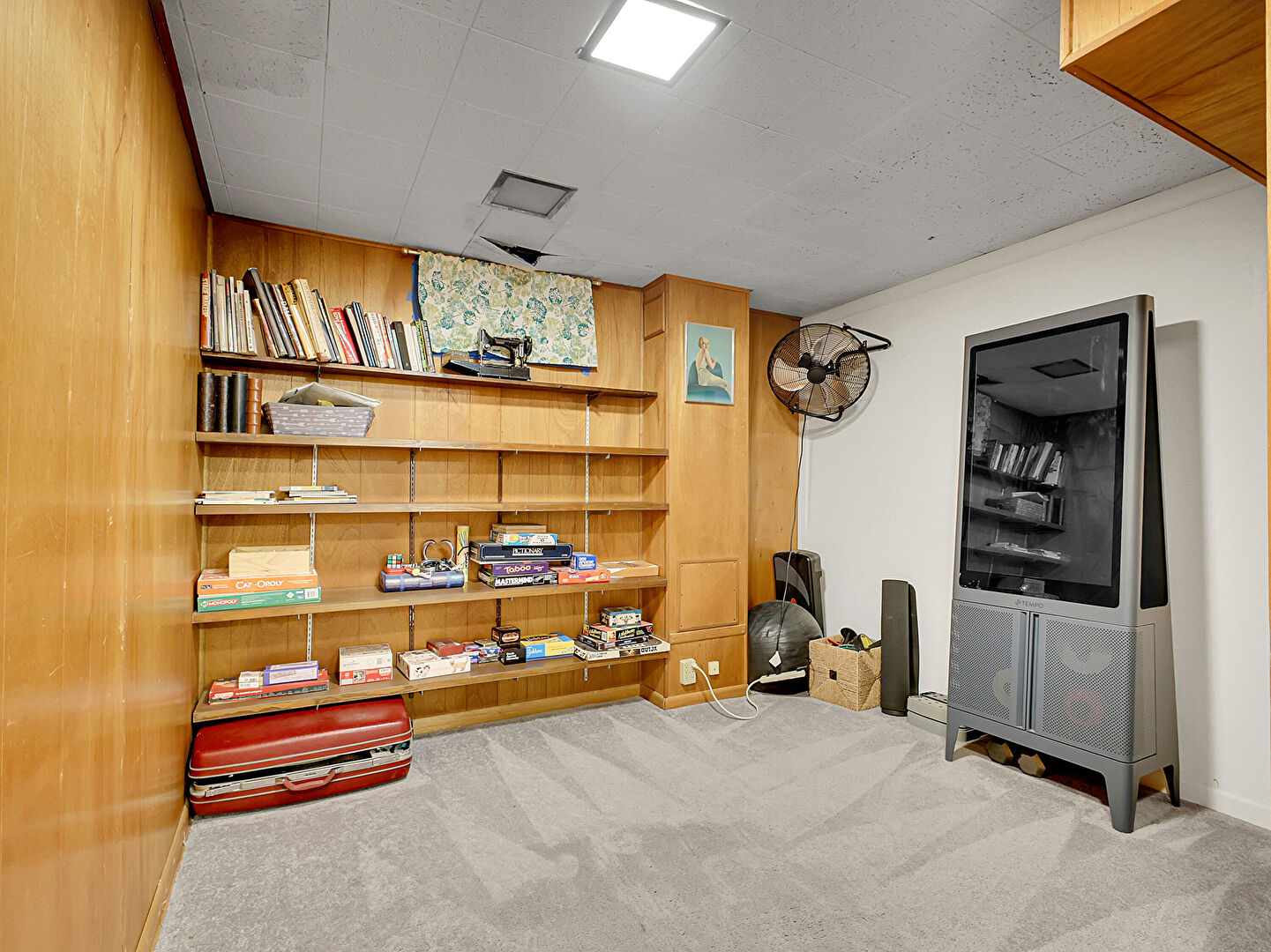 Baseboards Wall, Basement, Carpet, Ceiling Fan, Closet, Drop Ceiling, Drywall, Natural Light, Vent, Wood Finish Floor, Baseboards Wall, Ceiling Fan, Natural Light