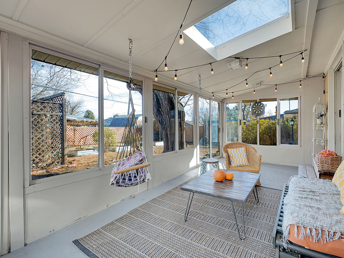 Downspout, Fence, Gutters, Sunroom, Vertical Siding