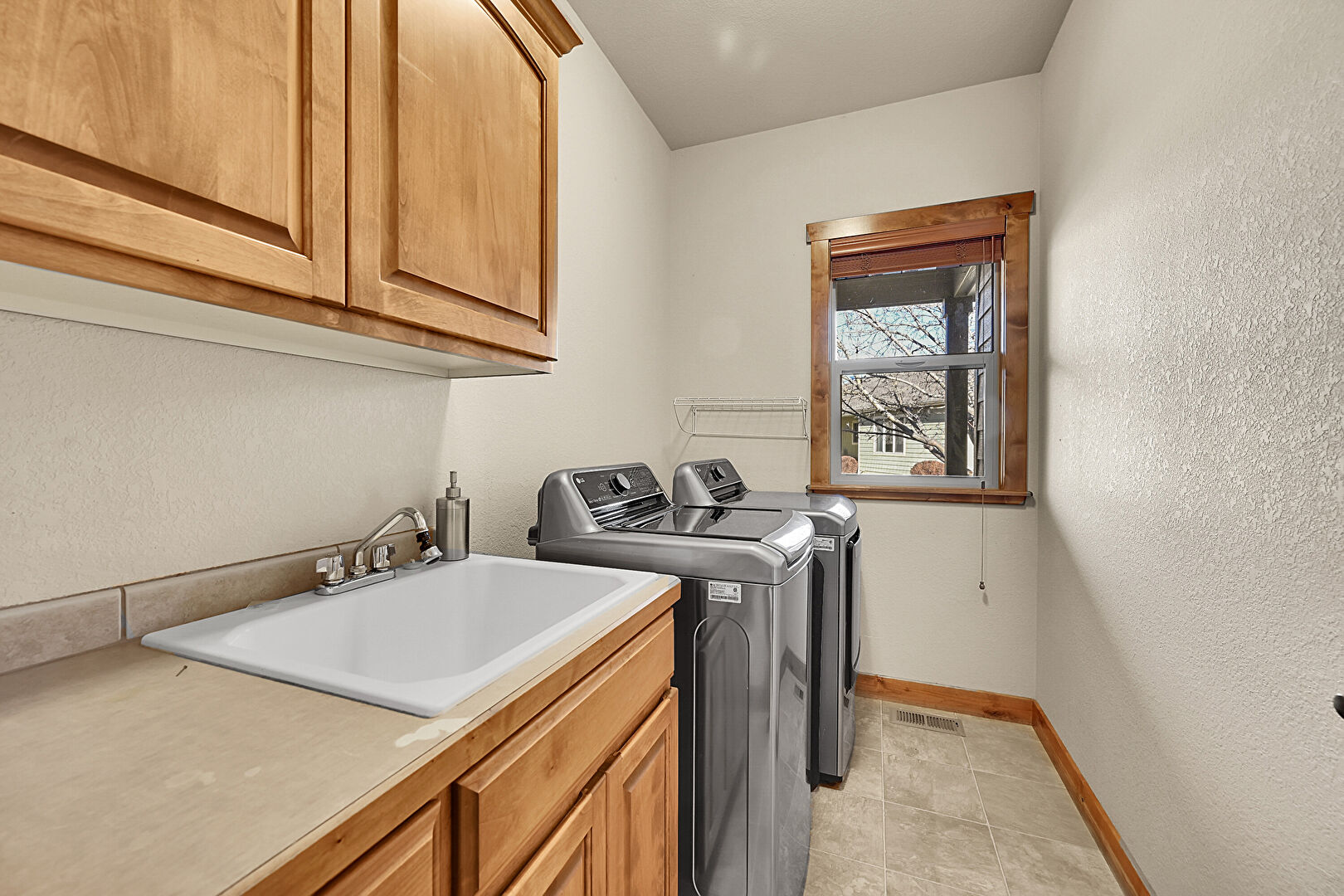 Baseboards Wall, Laundry, Textured Wall, Tile Floor, Vent, Natural Light