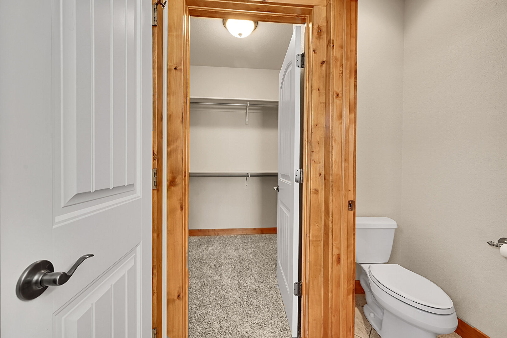 Baseboards Wall, Carpet, Ceiling Fan, Crown Molding, Drywall, Ensuite Bathroom, Full Bathroom, Natural Light, Tile Floor, Vanity, Walk In Closet, Water Closet, Baseboards Wall, Walk In Closet