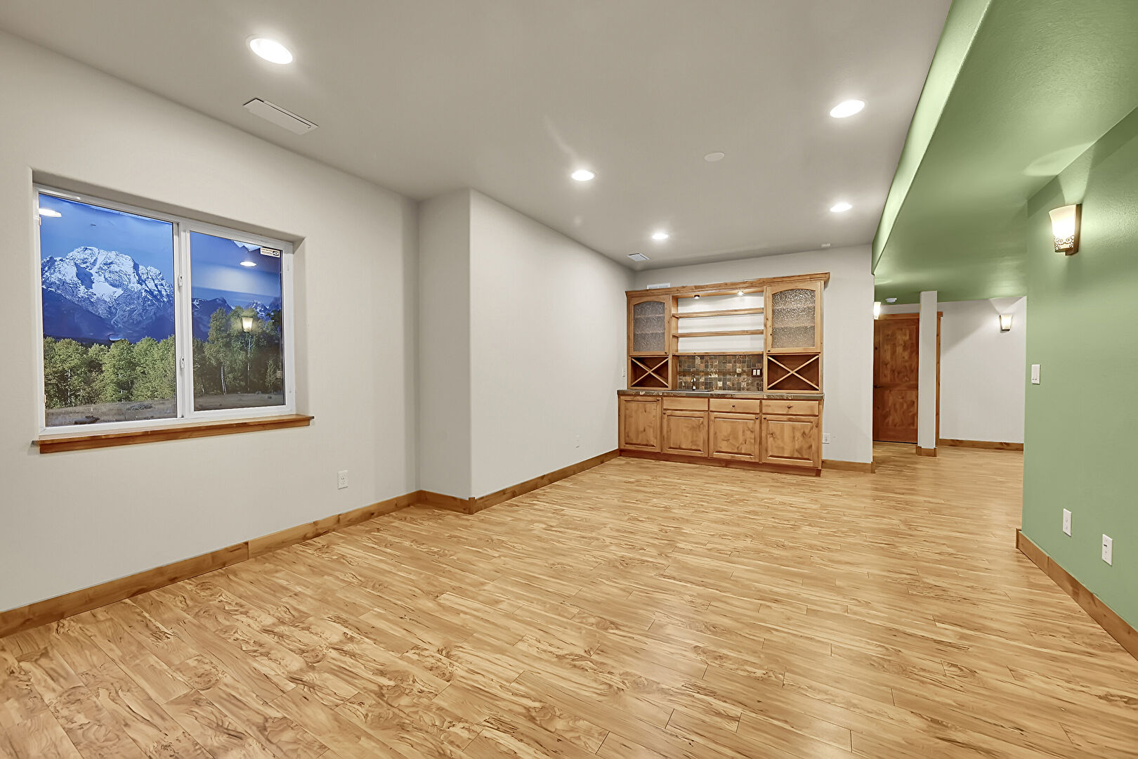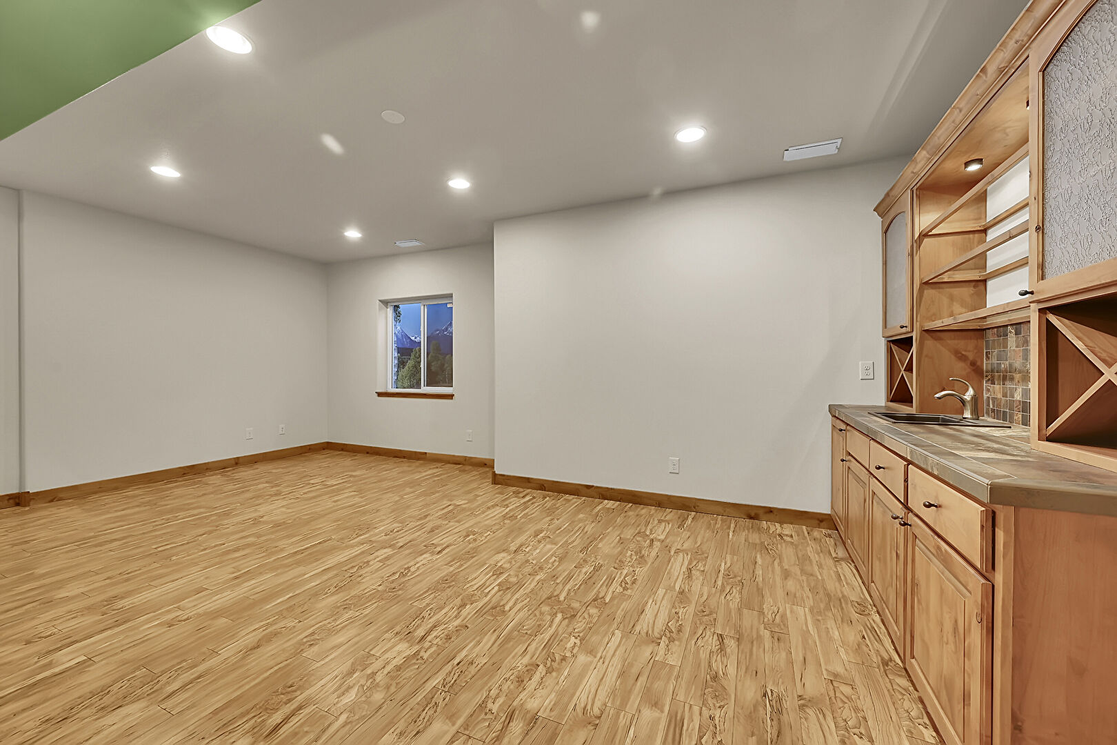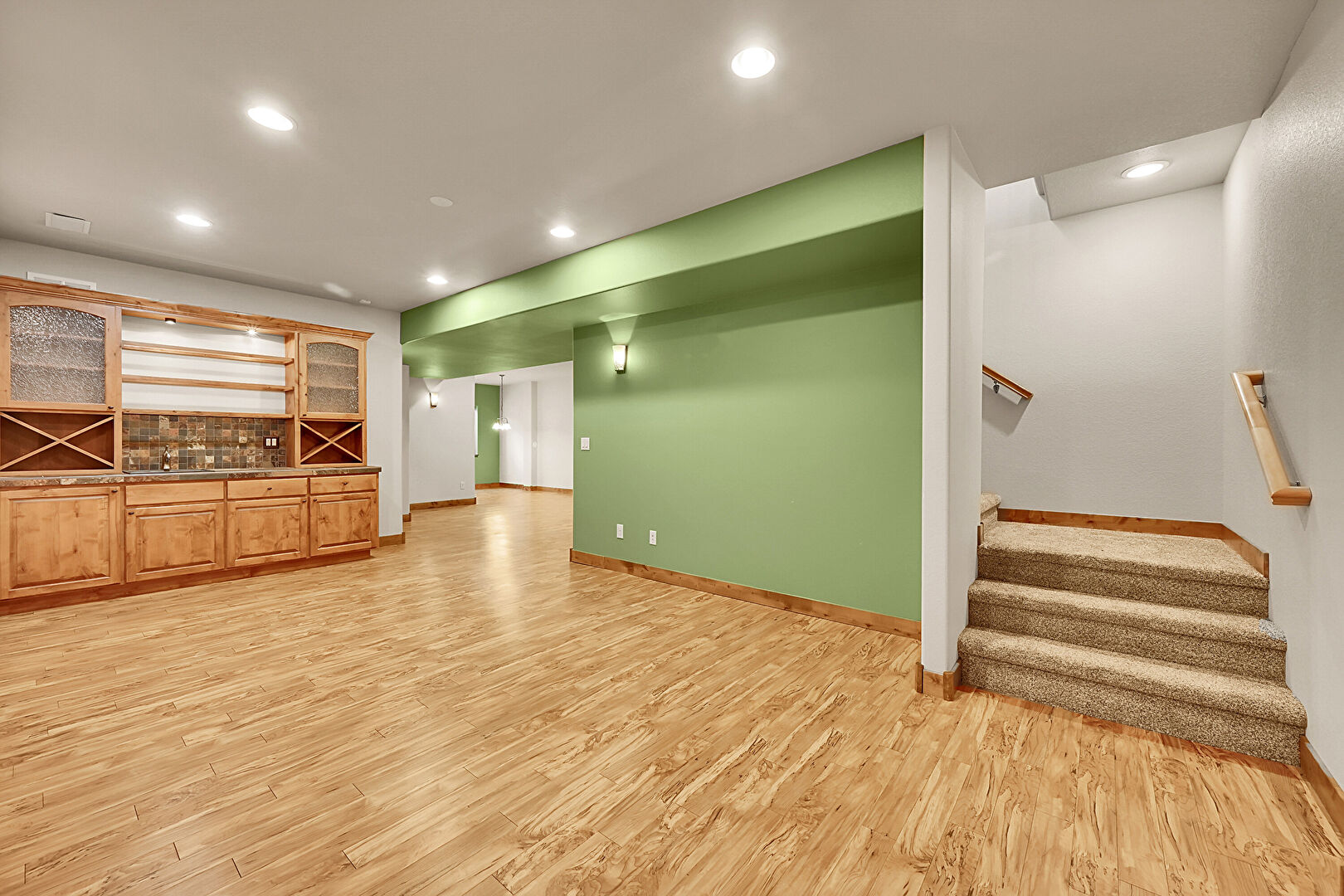 Baseboards Wall, Basement, Drywall, Indoor Bar, Natural Light, Recessed Lighting, Stairs, Vent, Wood Finish Floor, Baseboards Wall, Recessed Lighting, Wood Finish Floor