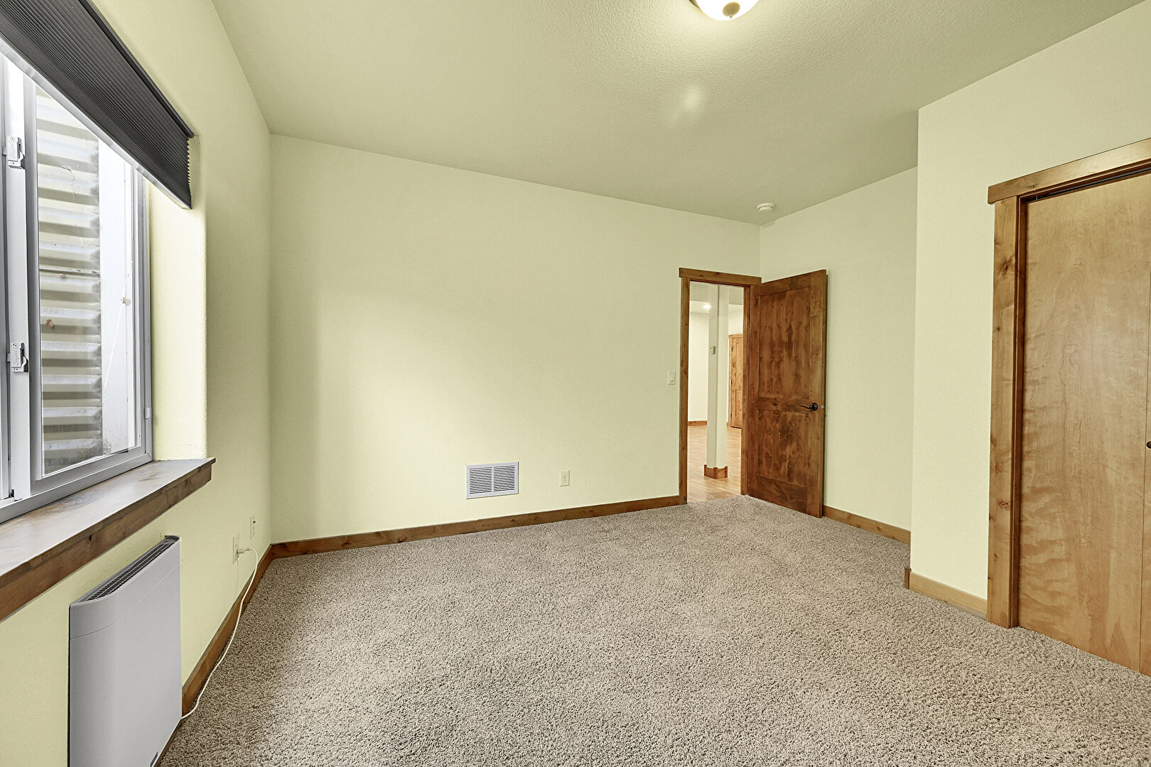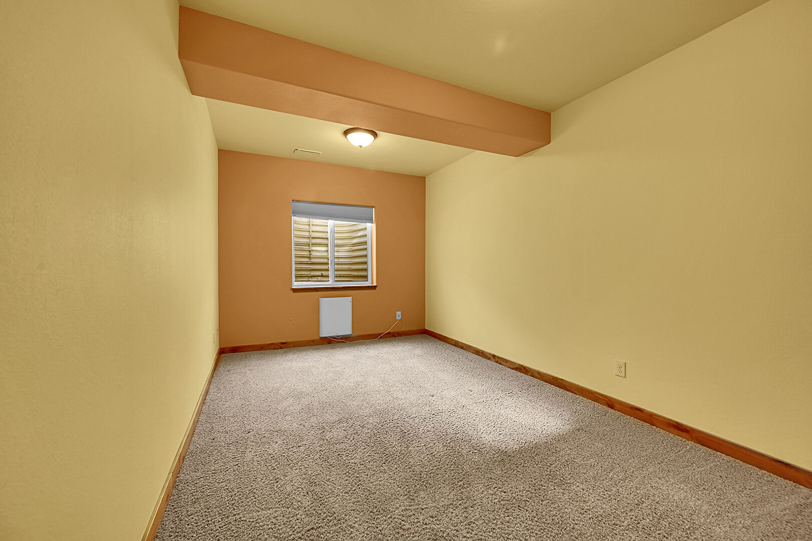 Baseboards Wall, Beamed Ceiling, Carpet, Ceiling Fan, Closet, Drywall, Natural Light, Radiator, Textured Ceiling, Tray Ceiling, Vent, Baseboards Wall, Basement, Carpet, Ceiling Fan