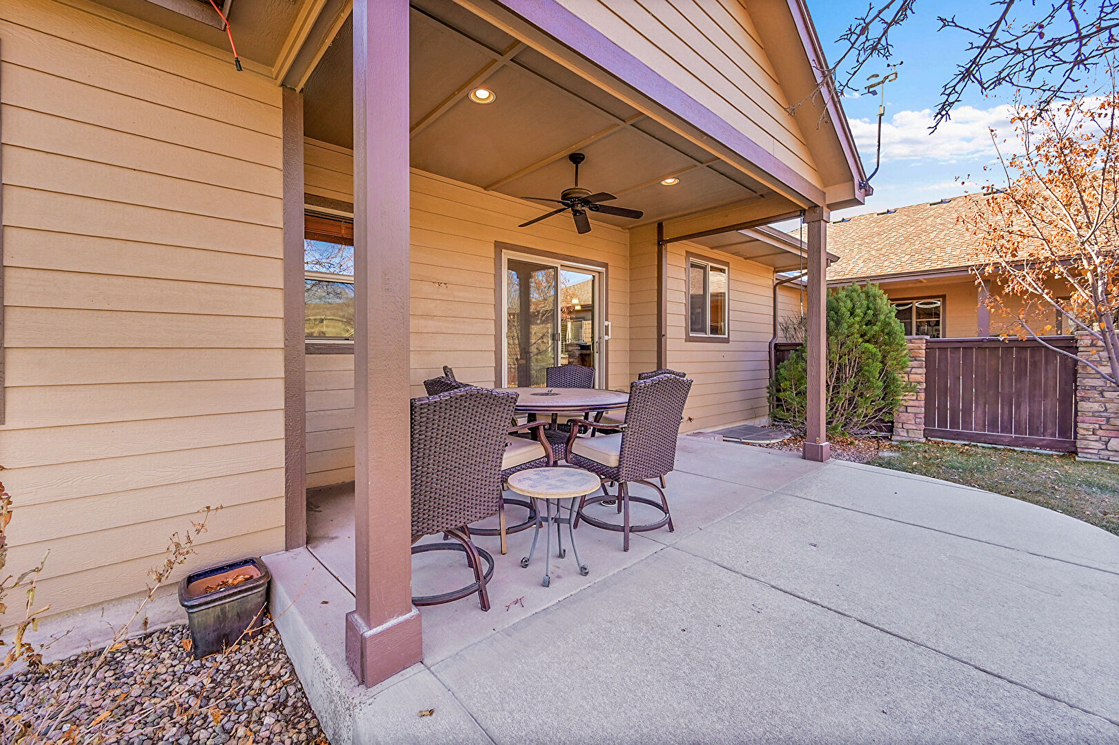 Ceiling Fan, Central Ac, Fence, Lawn, Outdoor Dining Area, Patio, Residential View, Ceiling Fan, Fence, Residential View