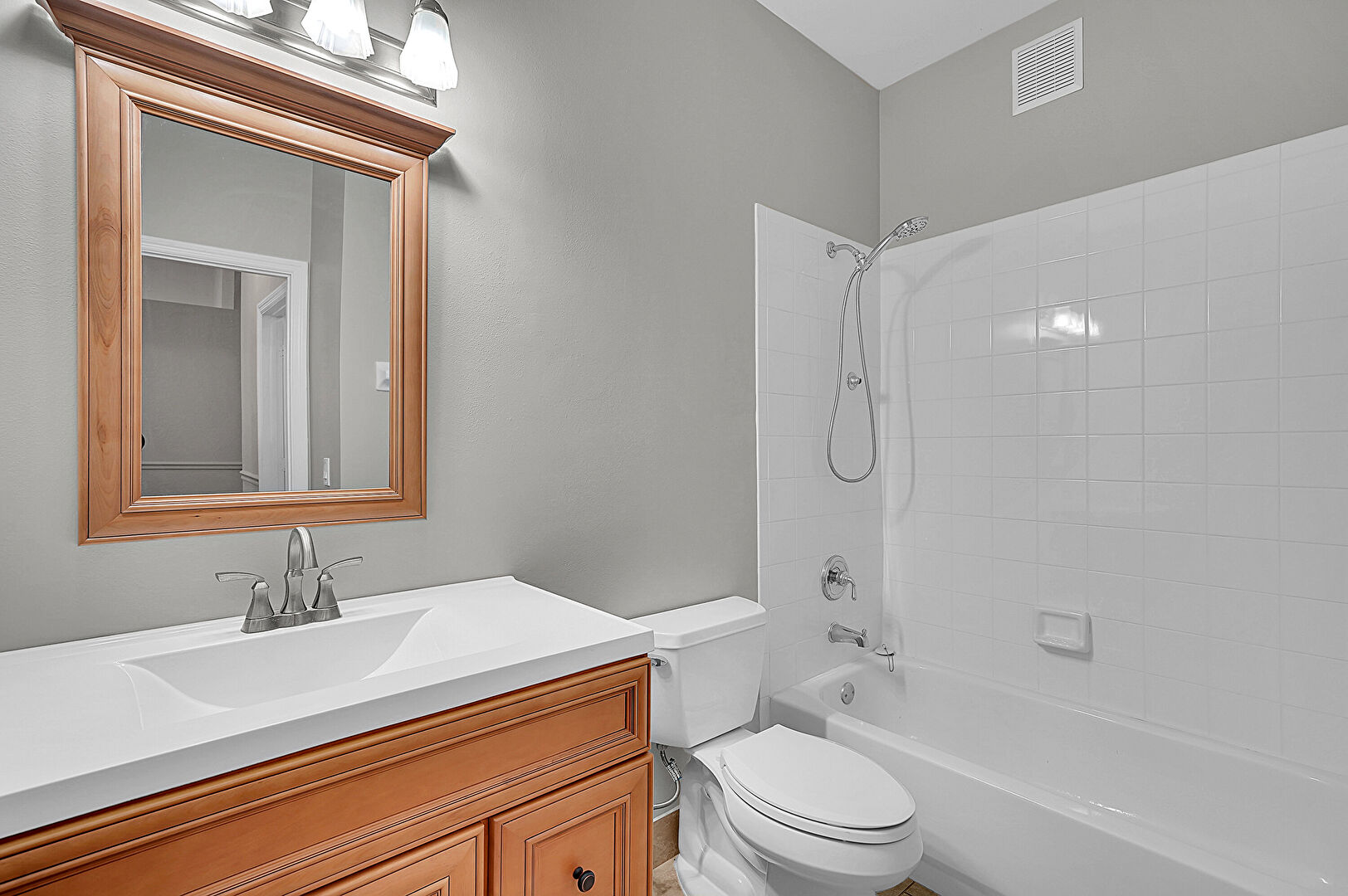 Combined Bath Shower, Drywall, Full Bathroom, Vent, Vanity