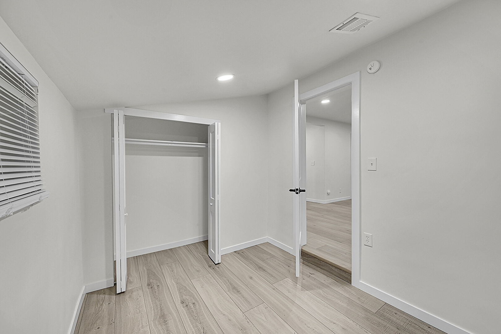 Baseboards Wall, Closet, Drywall, Recessed Lighting, Smoke Carbon Monoxide Detector, Vent, Wood Finish Floor, Vaulted Ceiling