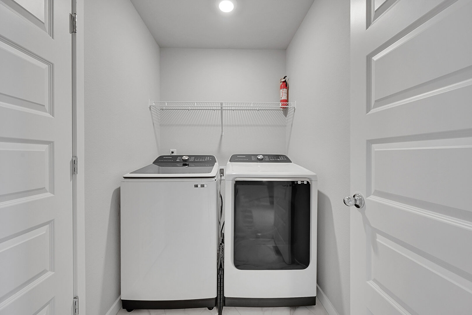 Baseboards Wall, Built In Shelves, Drywall, Fire Extinguisher, Recessed Lighting, Laundry