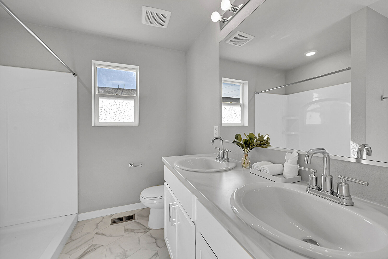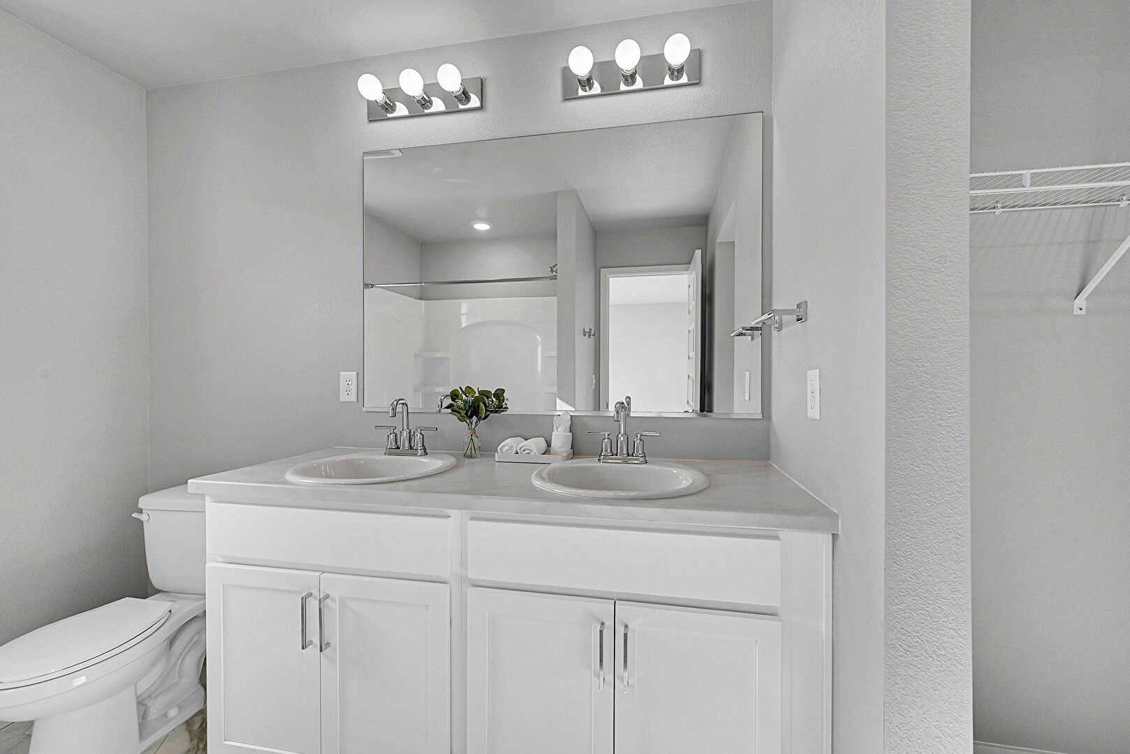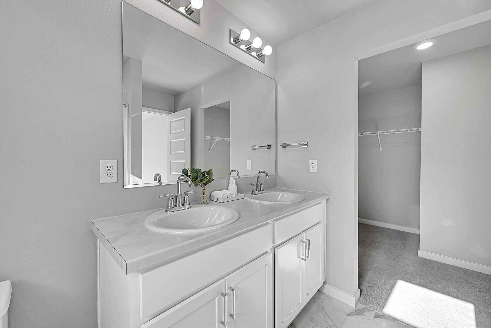 Baseboards Wall, Double Vanity, Drywall, Full Bathroom, Marble Finish Floor, Natural Light, Recessed Lighting, Textured Wall, Vent, Walk In Closet, Double Vanity, Marble Finish Floor, Recessed Lighting