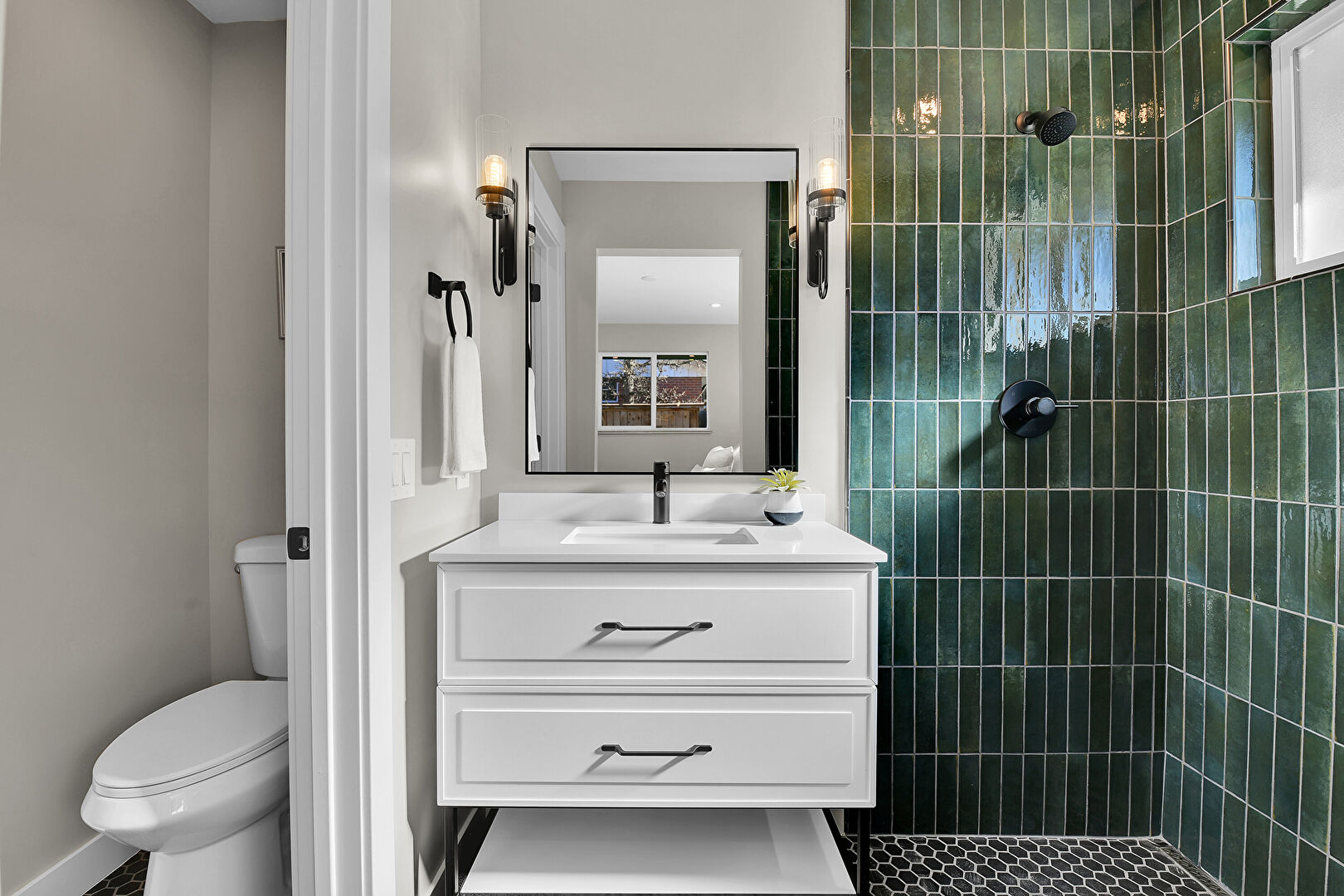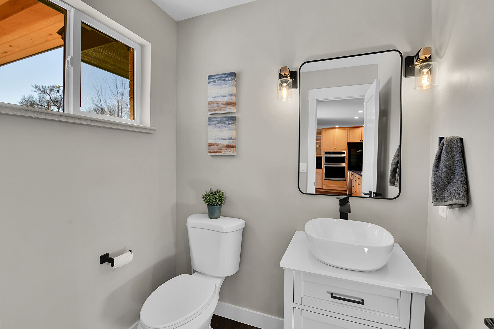 Combined Bath Shower, Double Oven, Drywall, Full Bathroom, Half Bathroom, Natural Light, Vanity, Wood Finish Floor, Baseboards Wall, Full Bathroom, Vent
