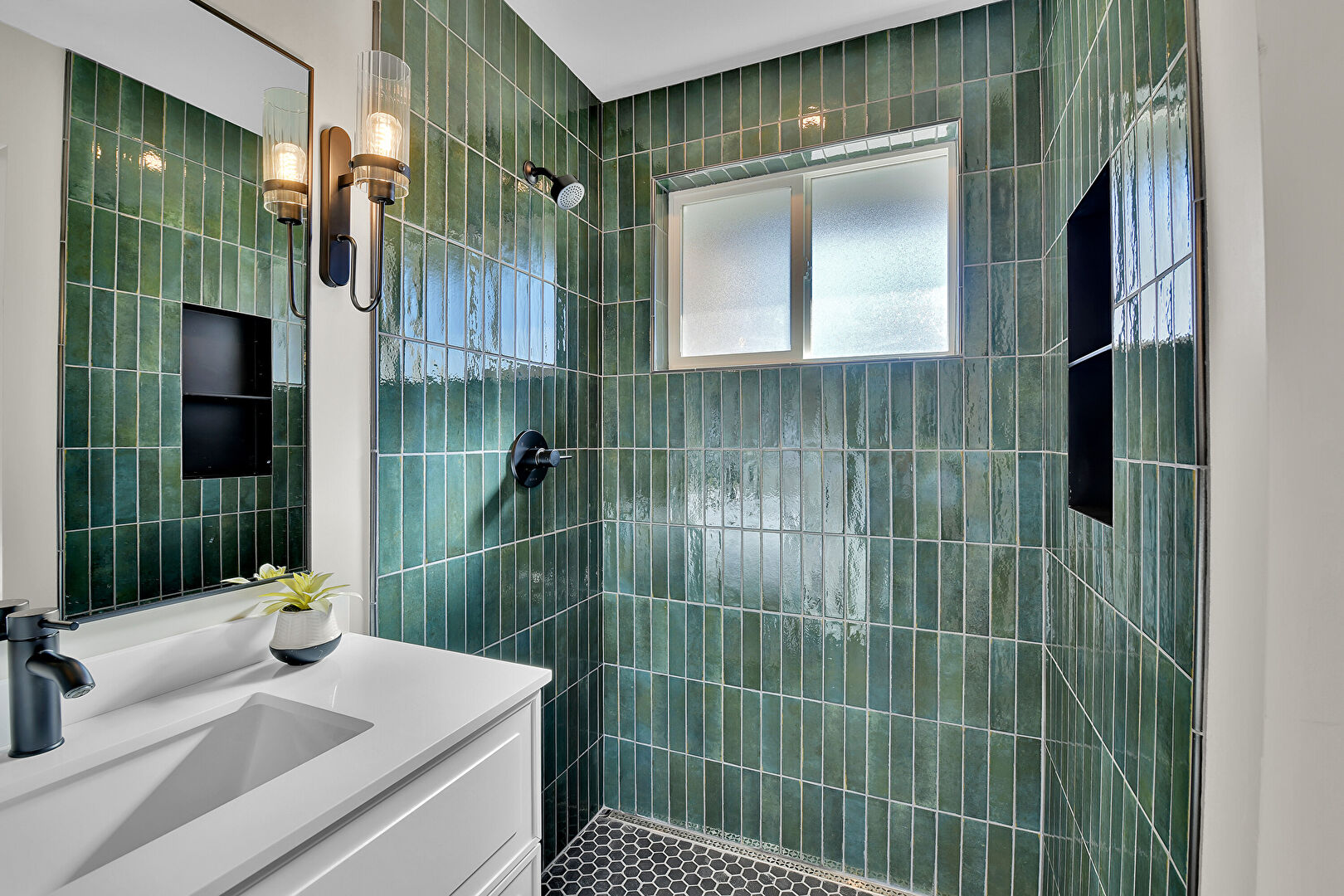 Drywall, Full Bathroom, Natural Light, Tile Wall, Vanity, Water Closet, Baseboards Wall, Vanity