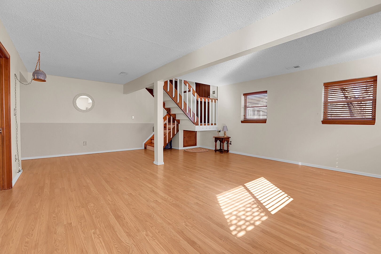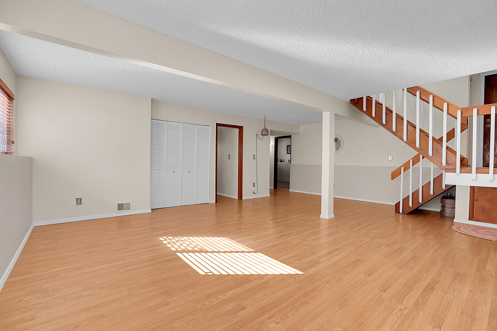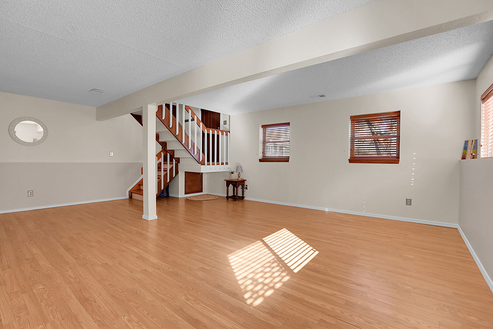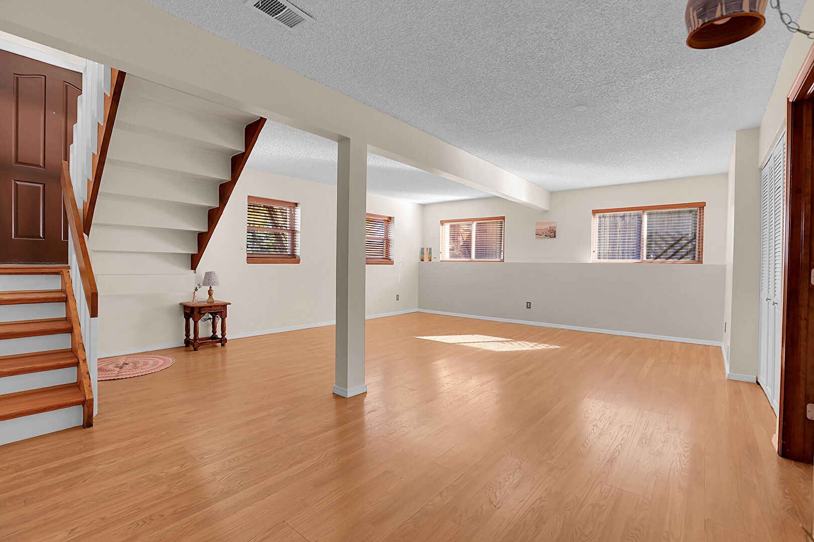 Baseboards Wall, Basement, Drywall, Natural Light, Stairs, Textured Ceiling, Vent, Wood Finish Floor, Drywall, Natural Light, Vent