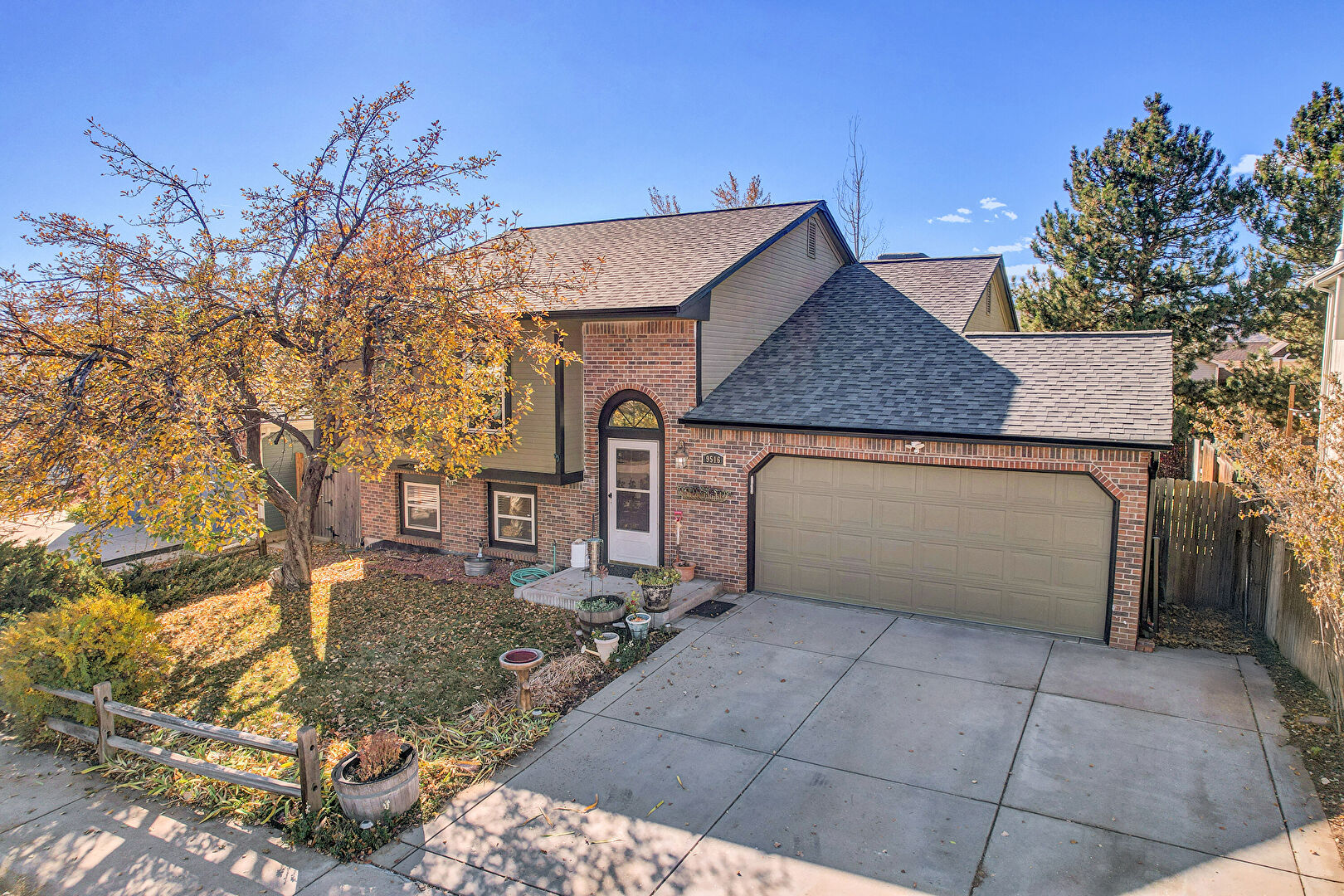 Brick Siding, Downspout, Driveway, Fence, Garage, Gutters, Horizontal Siding, Lawn, Shingle Roof, Brick Siding, Downspout, Fence, Gutters, Horizontal Siding, Shingle Roof