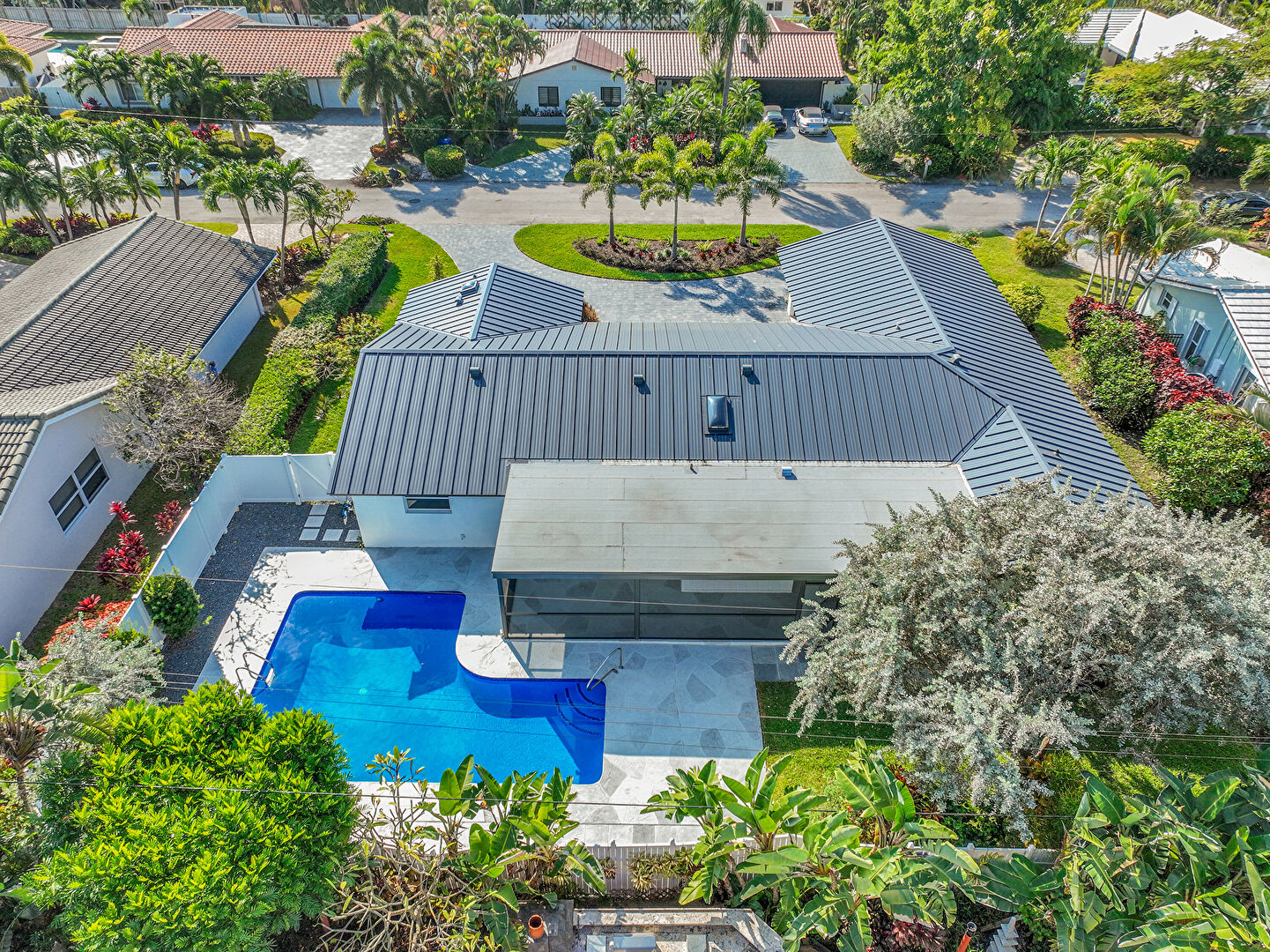 Driveway, Glass Siding, Lawn, Metal Roof, Stucco Siding, Driveway, Standing Seam Roof, Stucco Siding