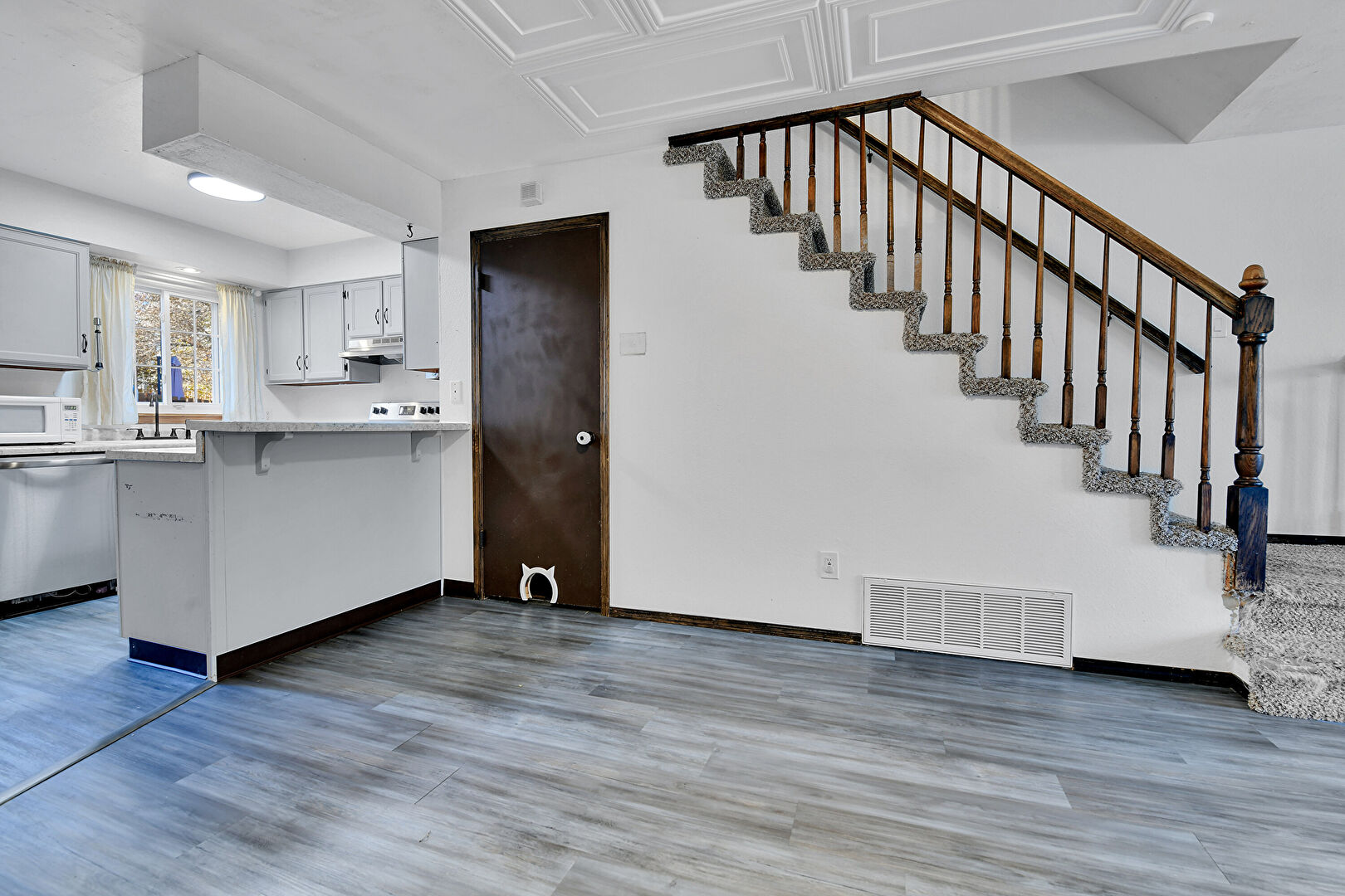 Baseboards Wall, Drop Stairs, Drywall, Wood Finish Floor, Drywall, Natural Light