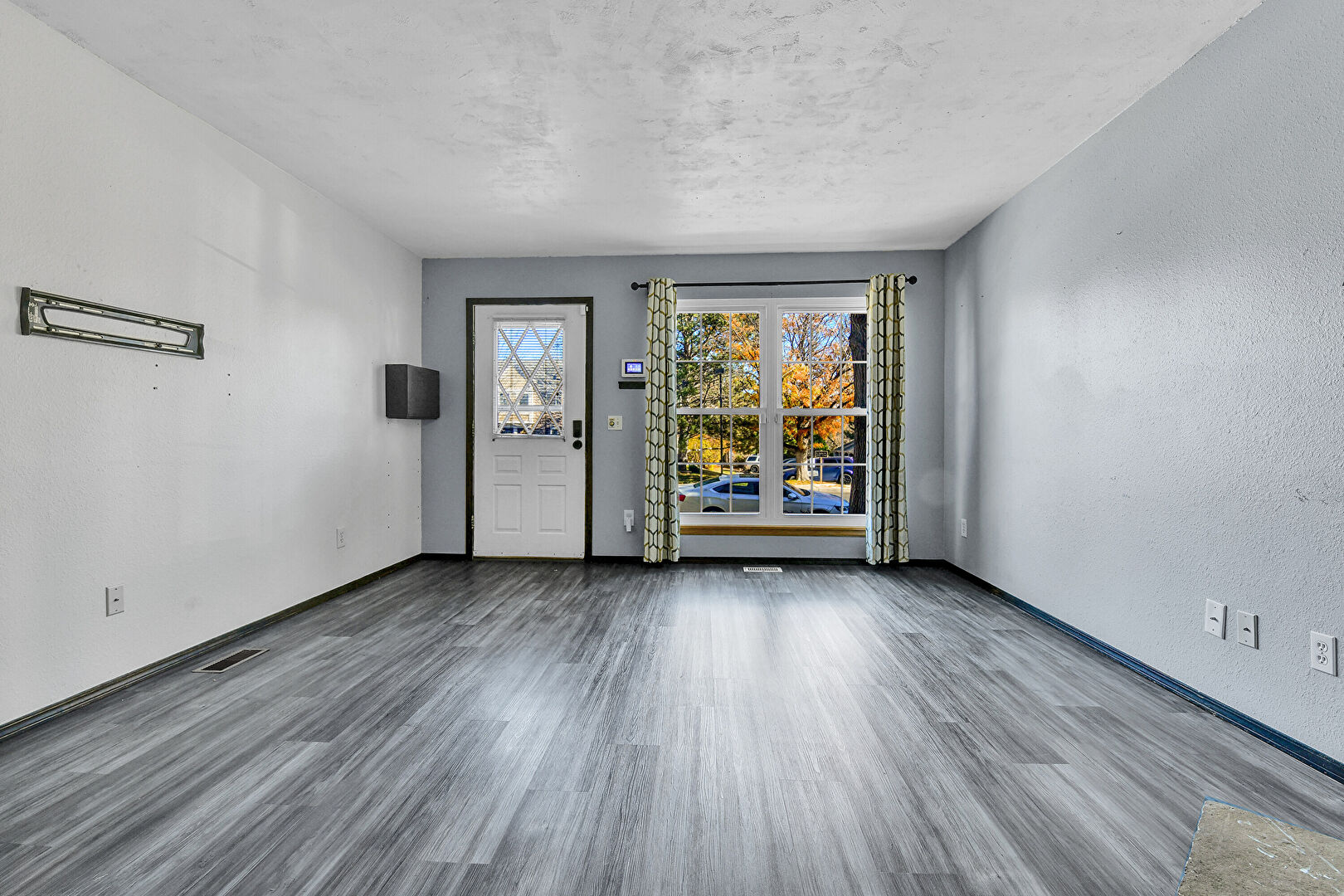 Baseboards Wall, Drywall, Fireplace, Natural Light, Stairs, Textured Ceiling, Vent, Wood Finish Floor, Textured Wall, Wood Finish Floor