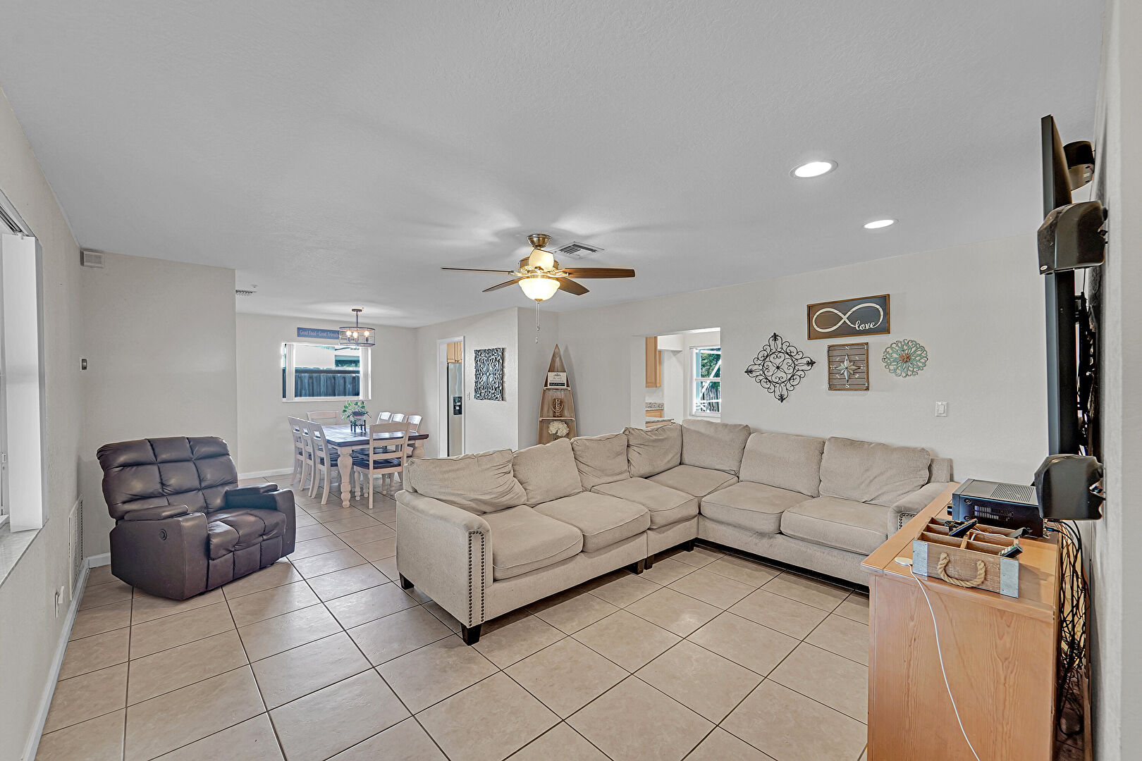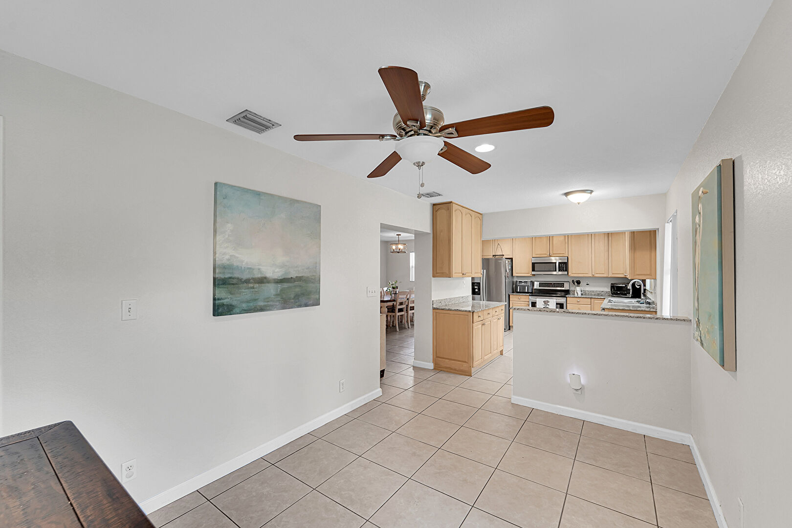 Baseboards Wall, Ceiling Fan, Drywall, Natural Light, Notable Chandelier, Recessed Lighting, Tile Floor, Vent, Natural Light, Tile Floor, Vent